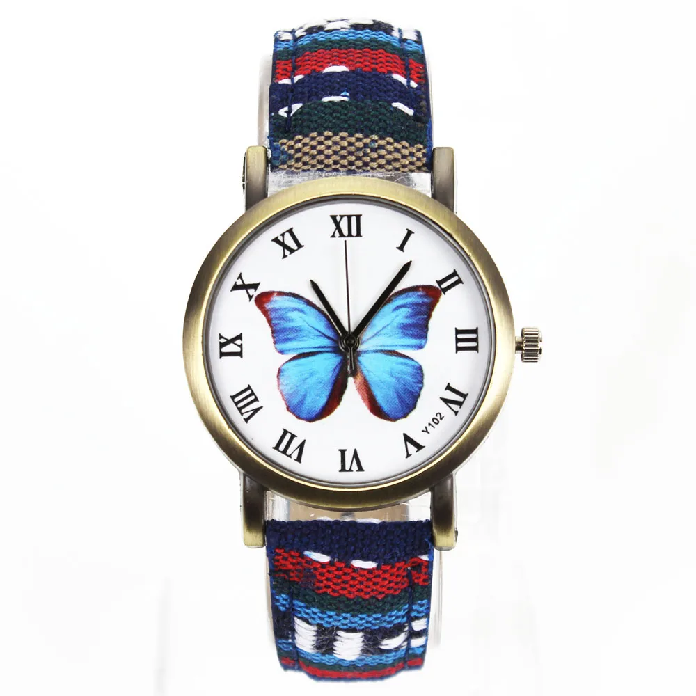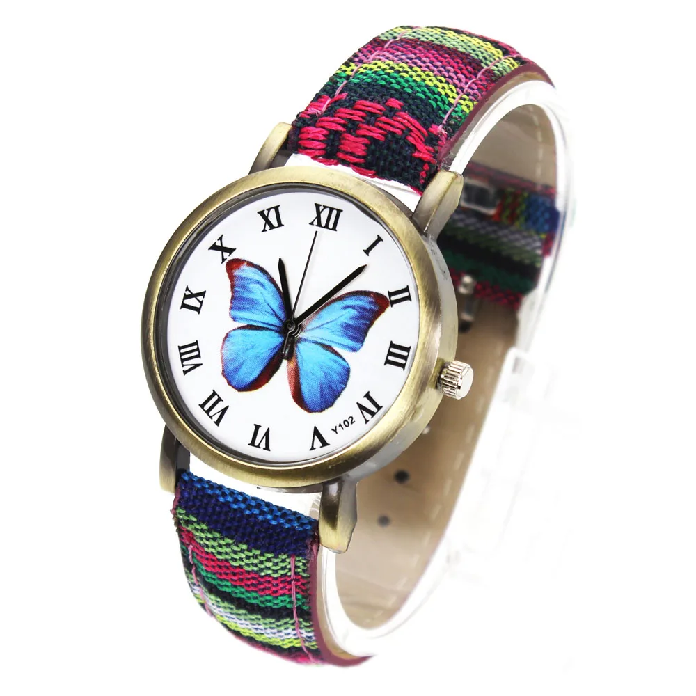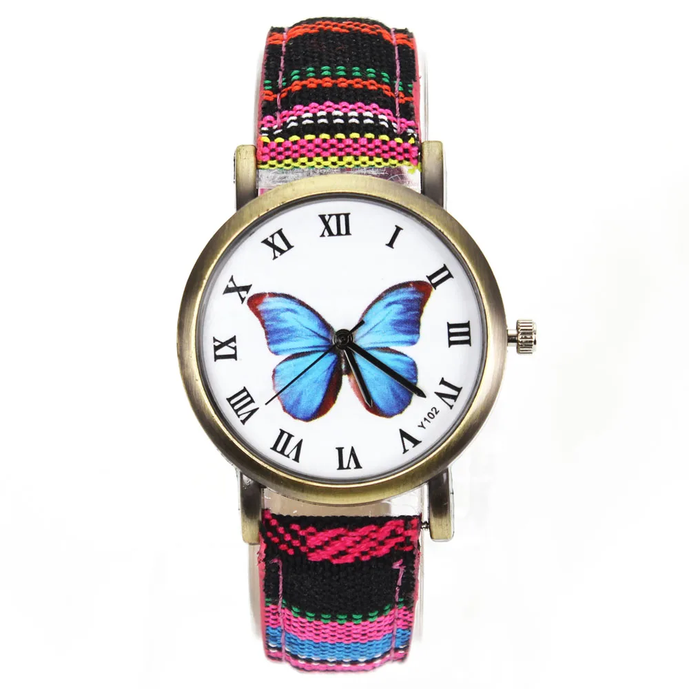 Женские модные часы с бабочками и цветами, тканевый ремешок для часов, камуфляжный ремешок, Женские Спортивные кварцевые наручные часы Montre Femme