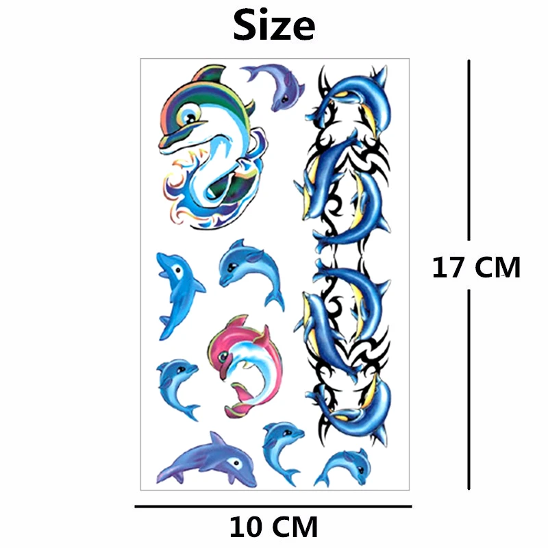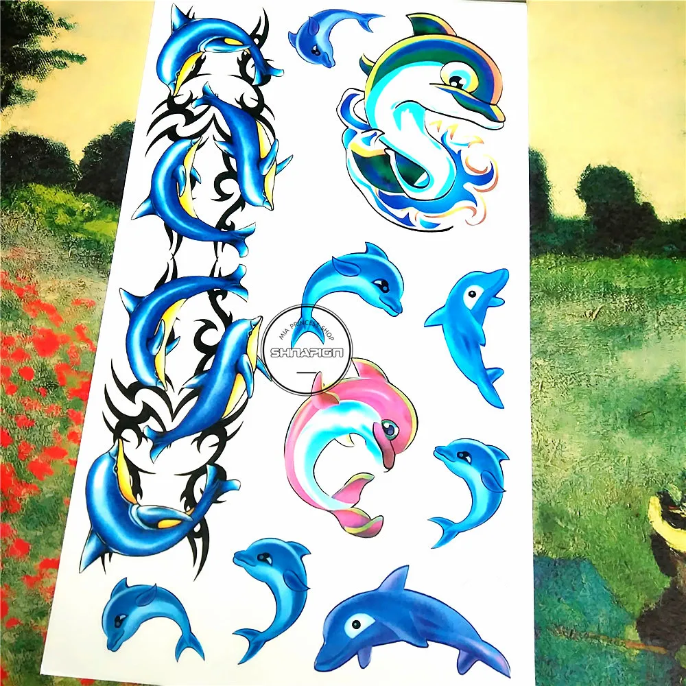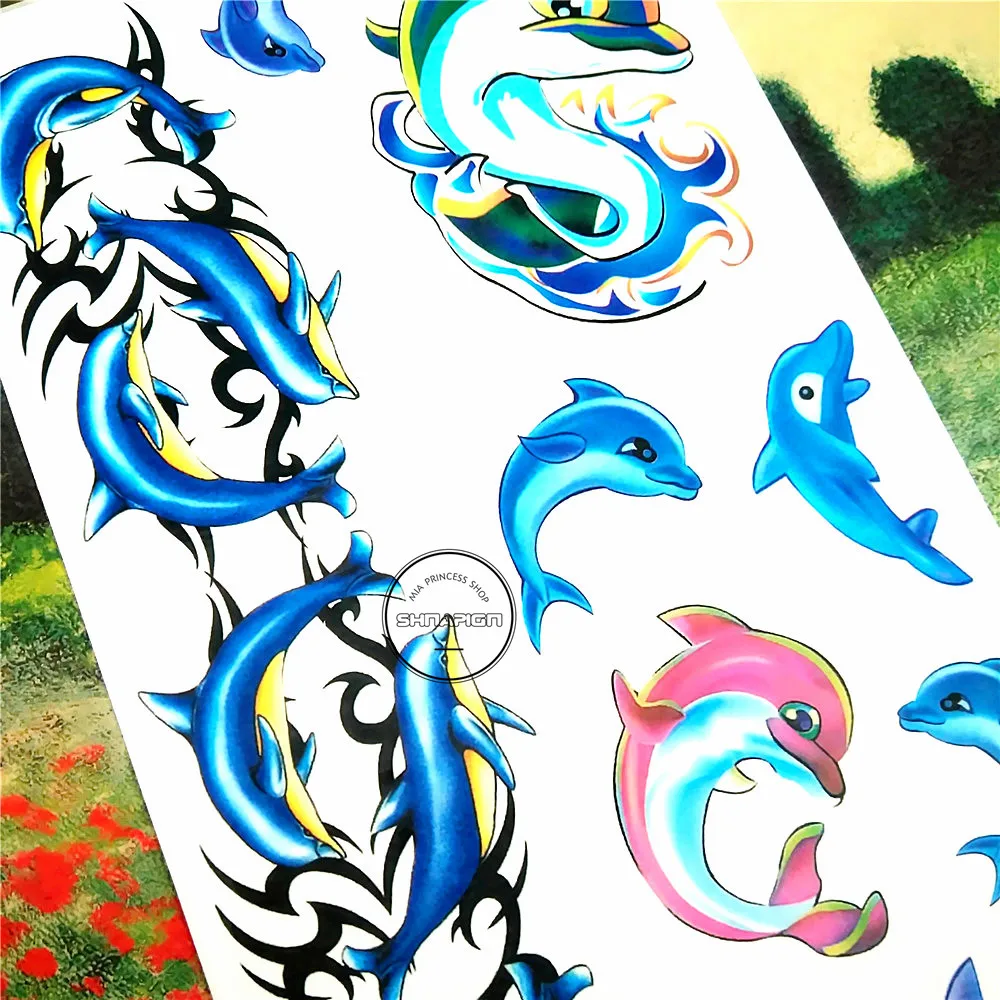 SHNAPIGN детская Временная тату-наклейка с голубым дельфином 10*17 см