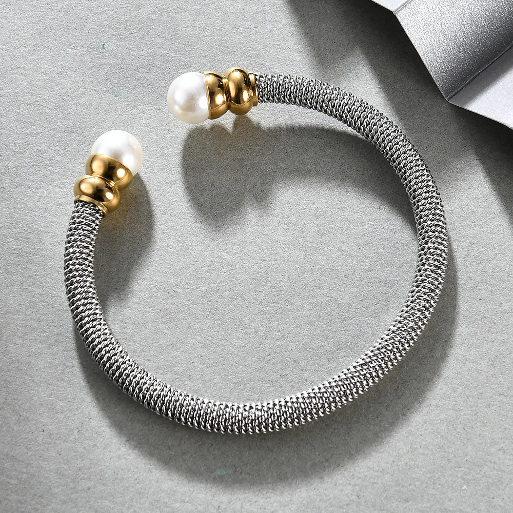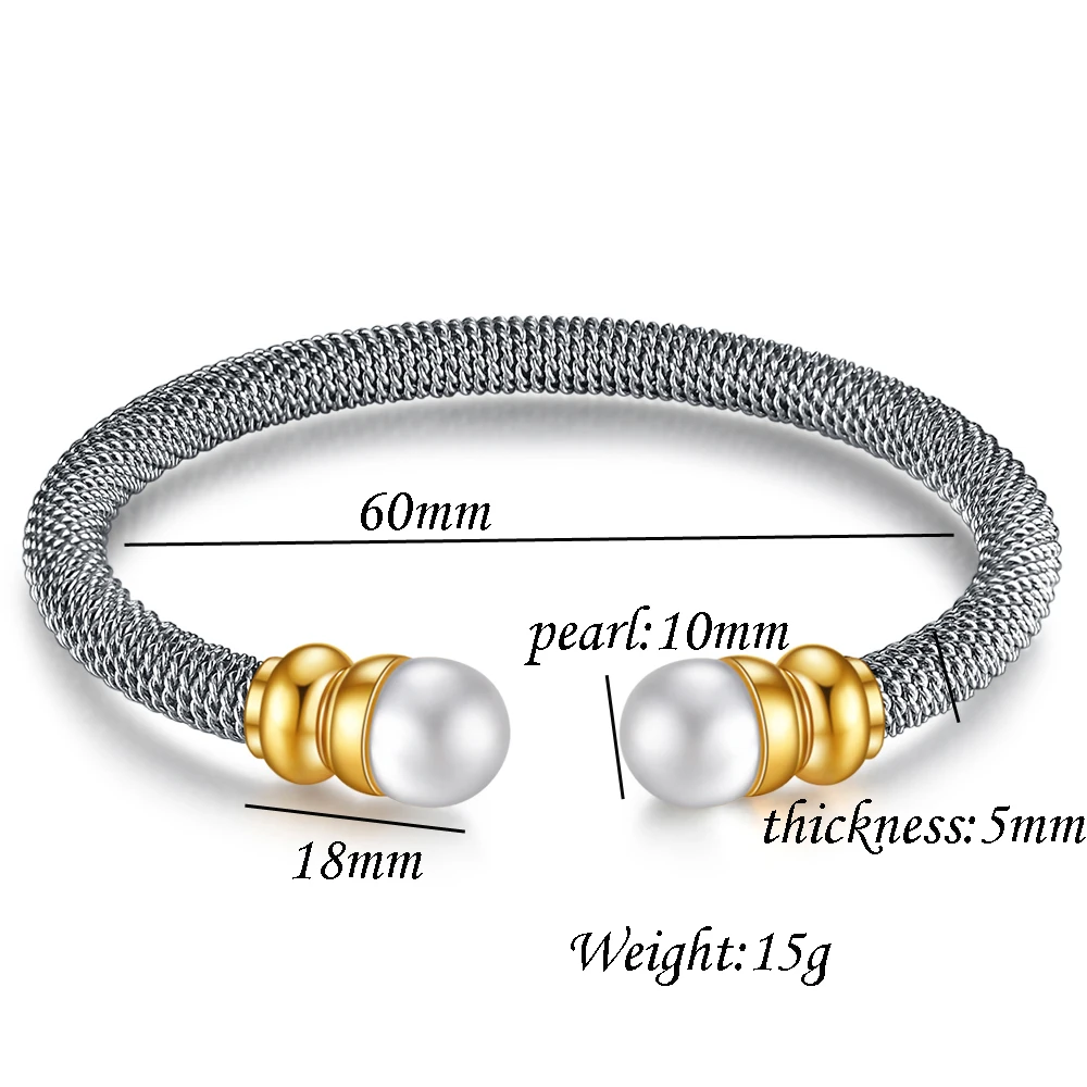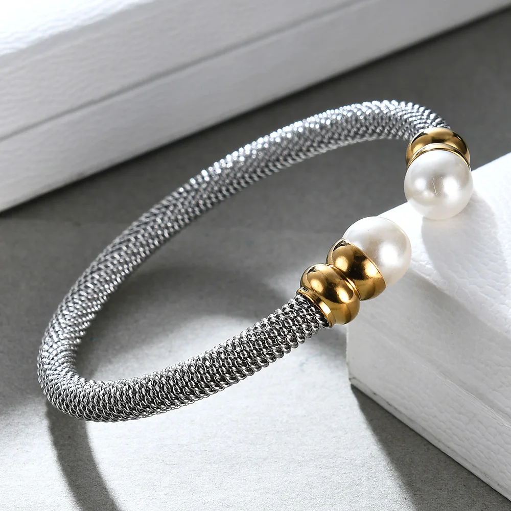 Браслеты с жемчугом женские, из нержавеющей стали, в трех цветах