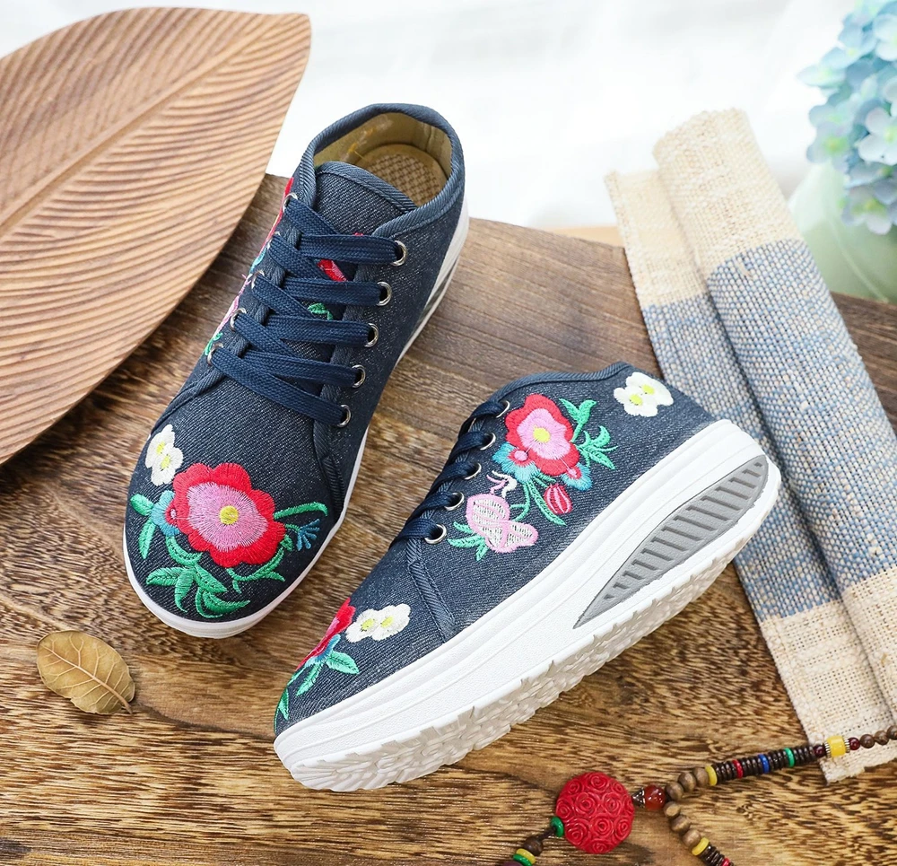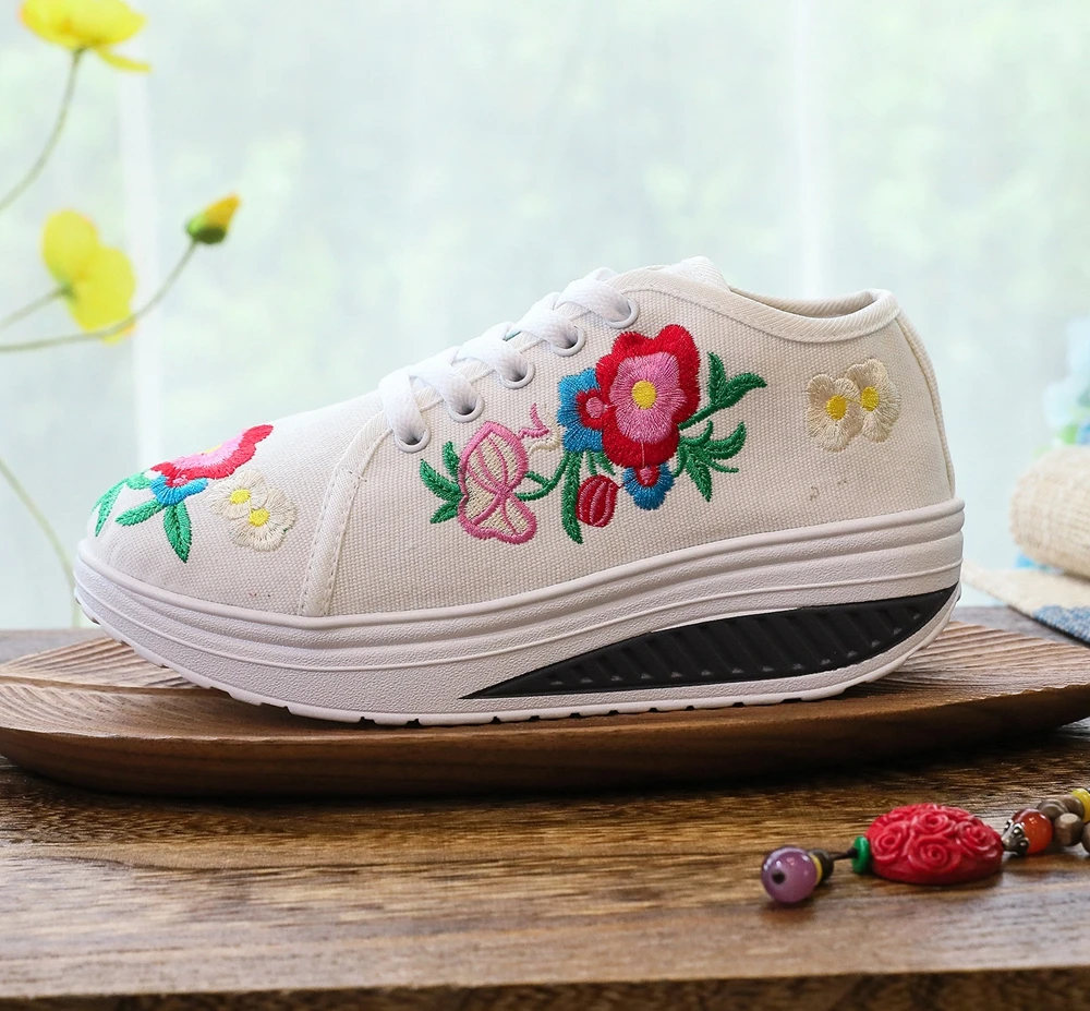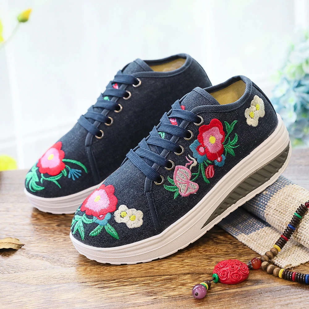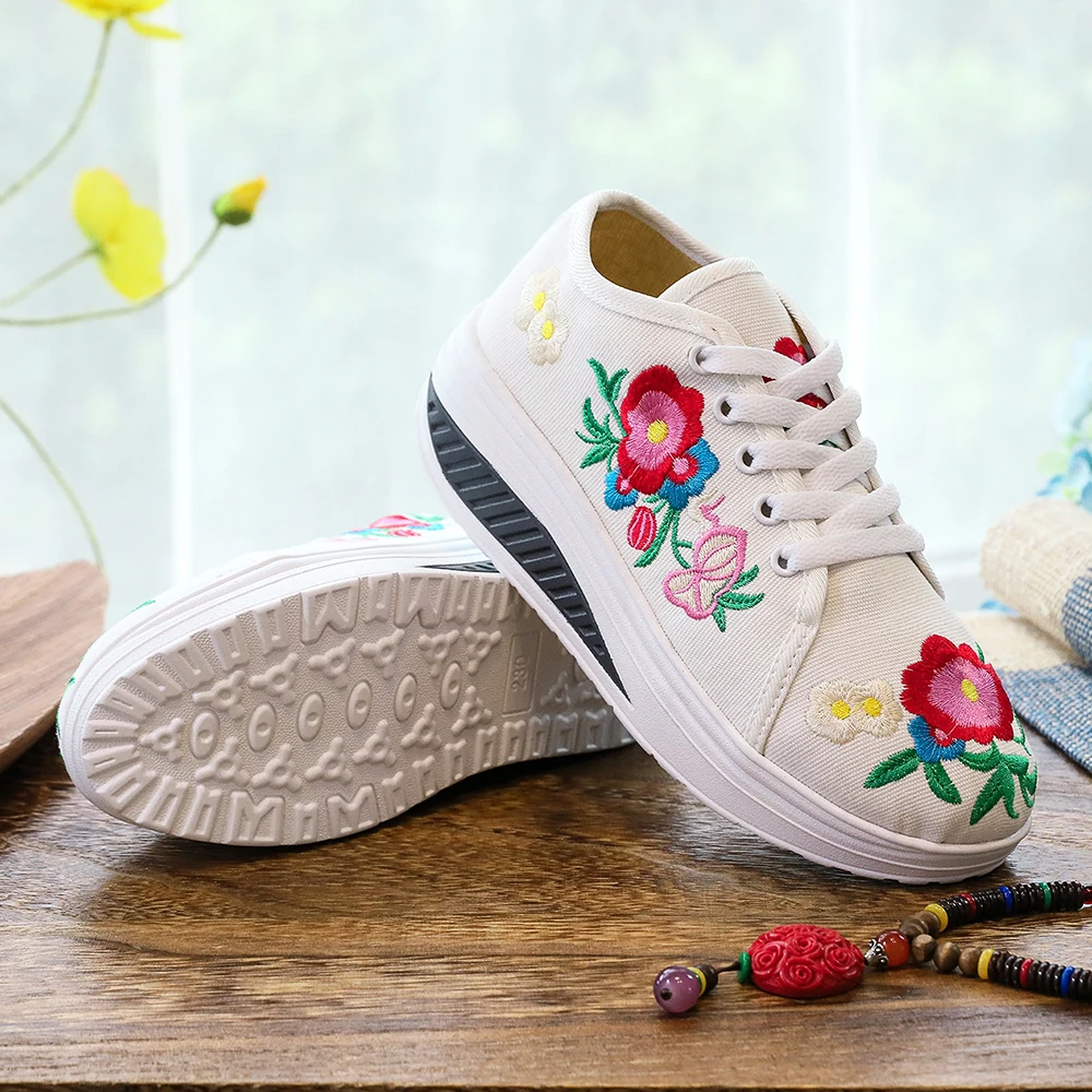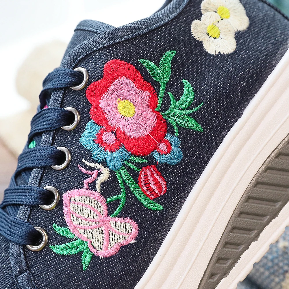 Женские парусиновые кроссовки Veowalk, с цветочной вышивкой, на плоской платформе, на шнуровке, повседневные, удобные, низкие, криперы