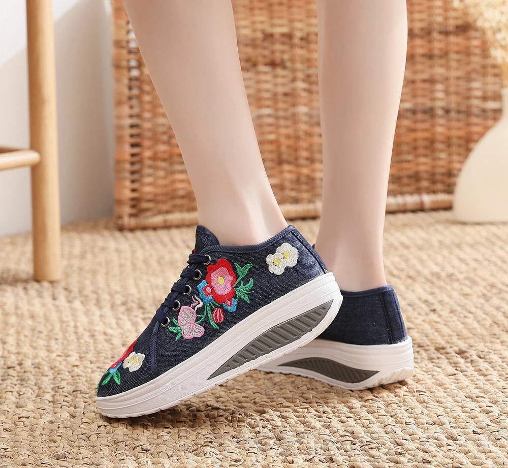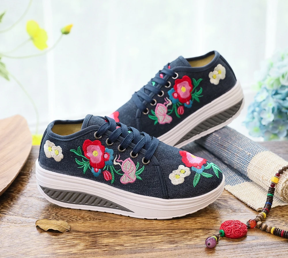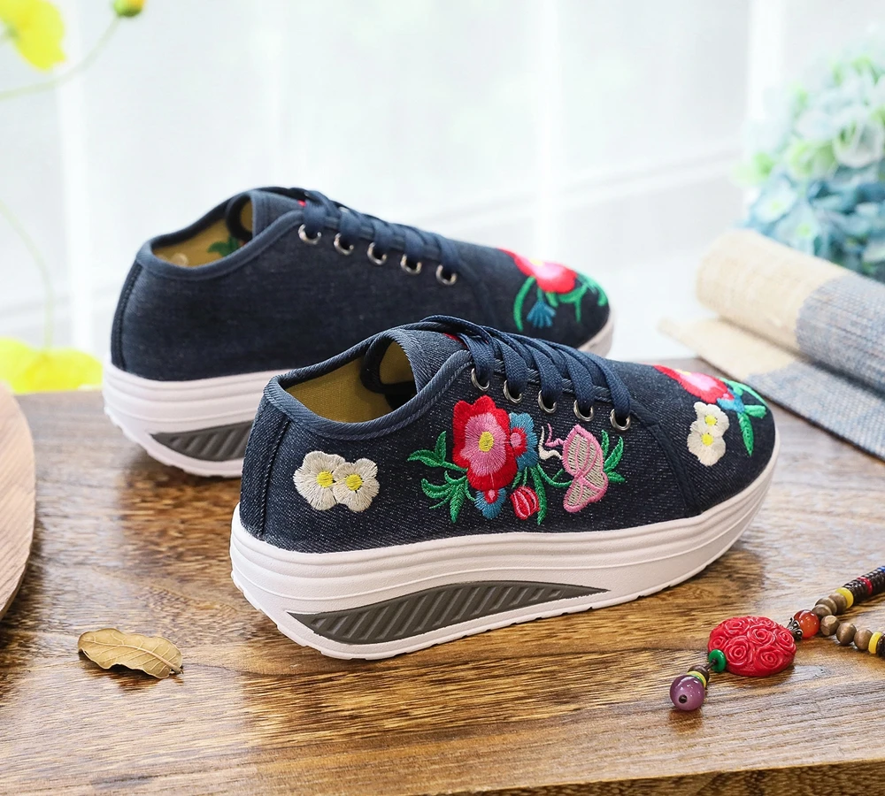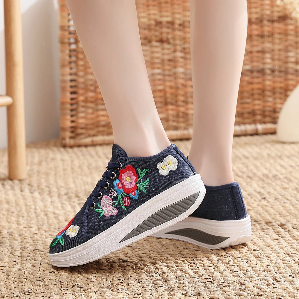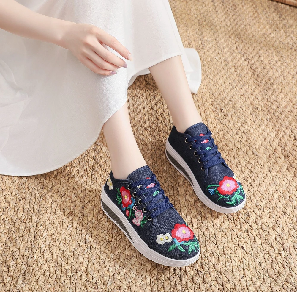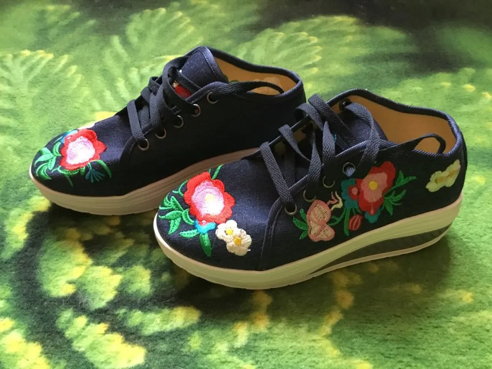 Женские парусиновые кроссовки Veowalk, с цветочной вышивкой, на плоской платформе, на шнуровке, повседневные, удобные, низкие, криперы