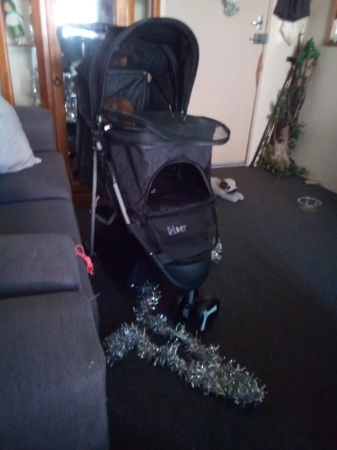 Siri is compfy as long as strapped into her pet stroller I brought from my deal, she now goes for long walk with me, I get to take her on public transport, I get to rest my coffee ☕☕ or drink n I have a compartment under the stroller to place groceries. I am so wrapped . Most I always purchase here but some things are so out of my price range fast delivery I ordered X 2 straps this is the pram n then I'll show straps ❣️