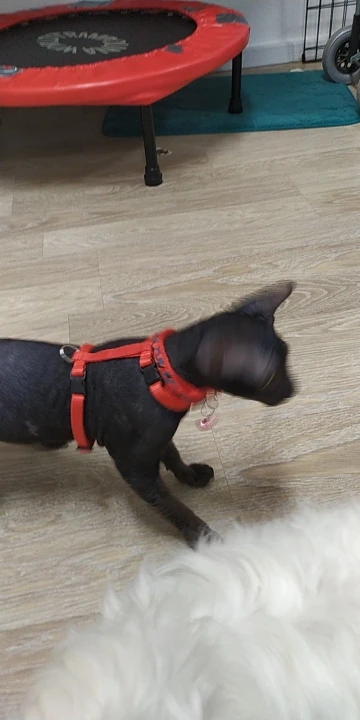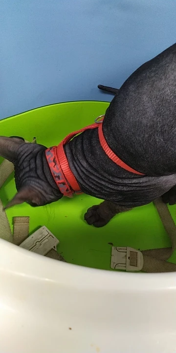очень классная. Для сфинкса 4мес. я взяла самую маленькую.Шлейка регулируется самый маленький размер подойдет и для взрослого кота и для чихуа хуа