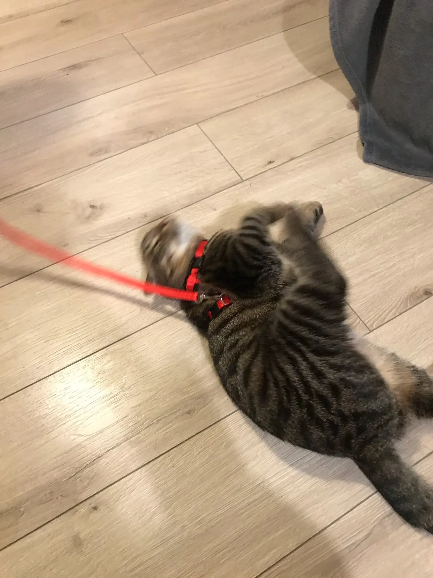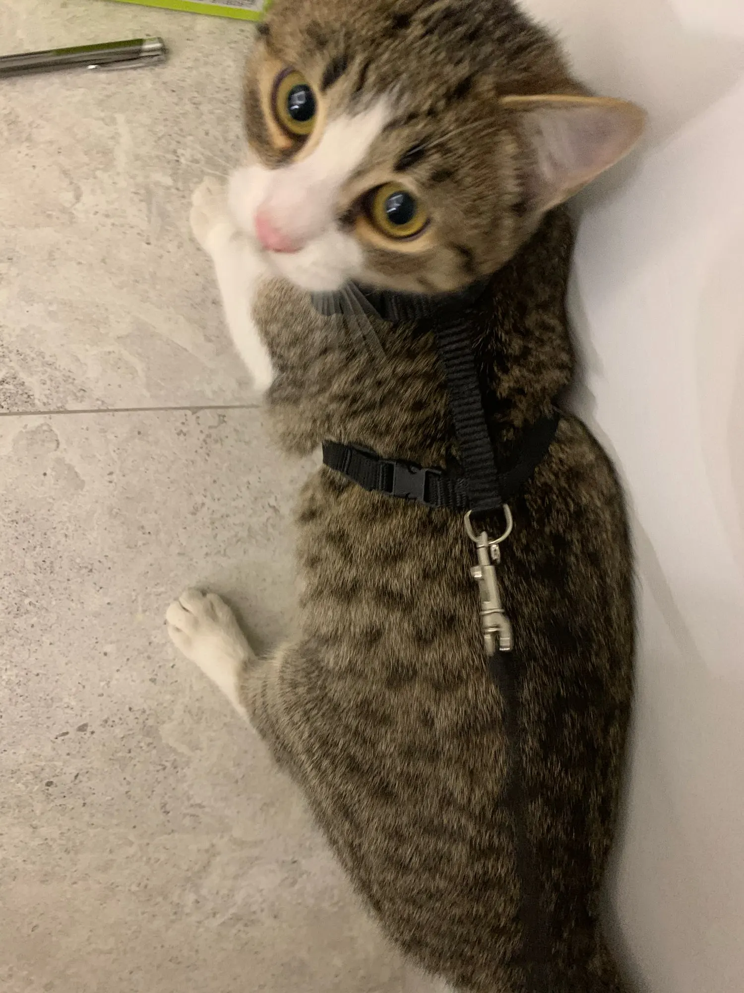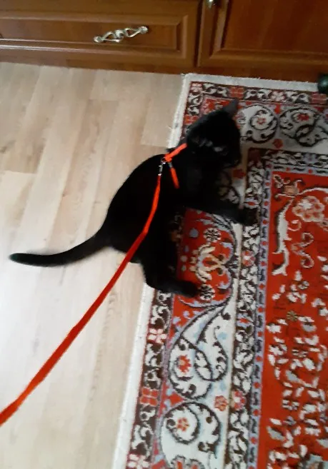 Вроде как для взрослых котиков поводок, но моему котёнку 4 месяца и ему как раз, размер увеличить нельзя. Только уменьшить.