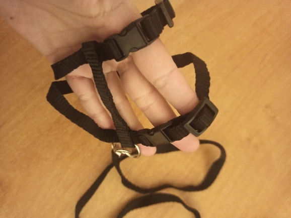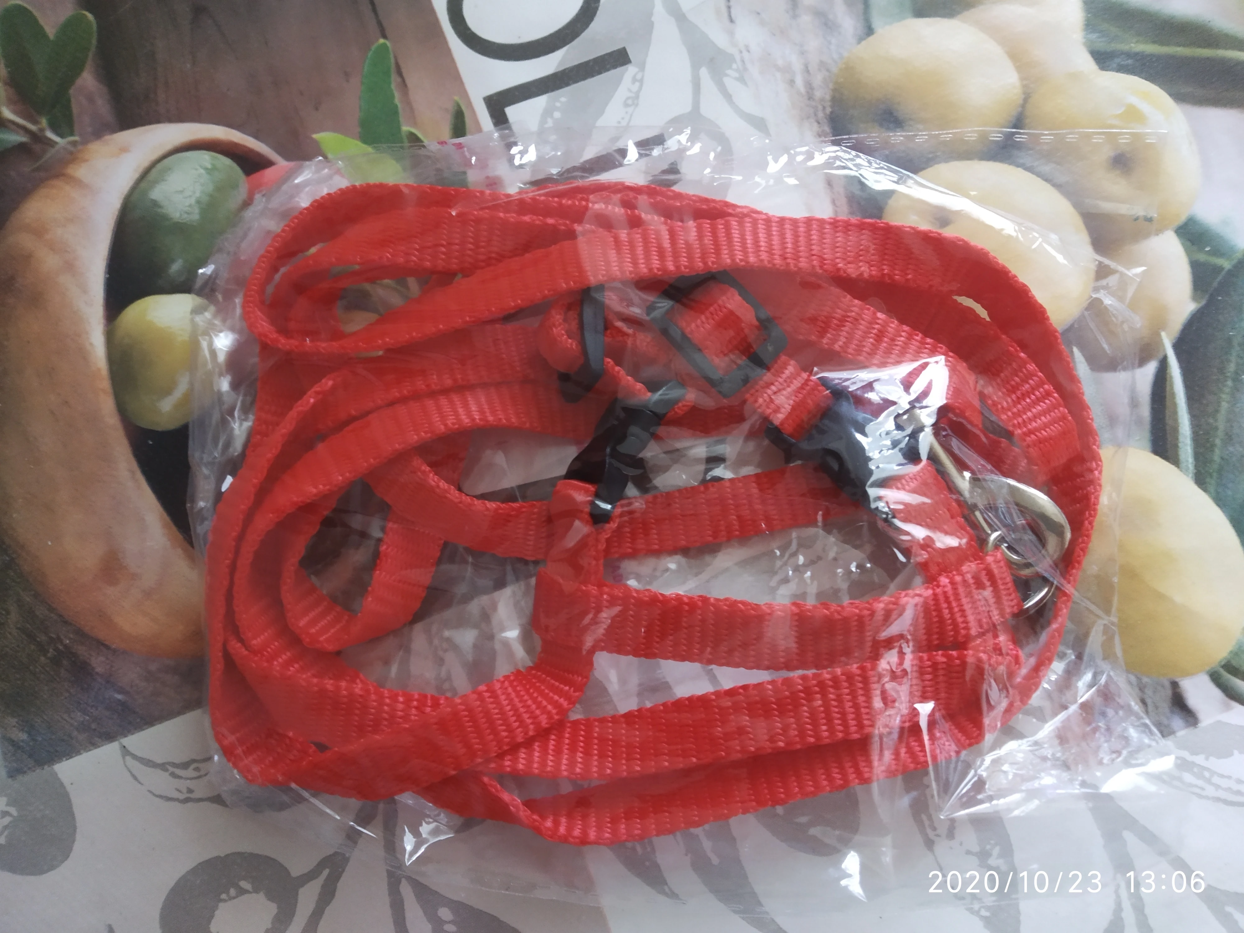 Товар пришел за 20 дней на Укрпочту. На кошку средних размеров сойдёт, на крупной давит в шею. Теперь можно смело брать на природу свою питомицу и не бояться, что сбежит. Карабин поводка мог бы быть и получше, конечно, но и этот должен выдержать.