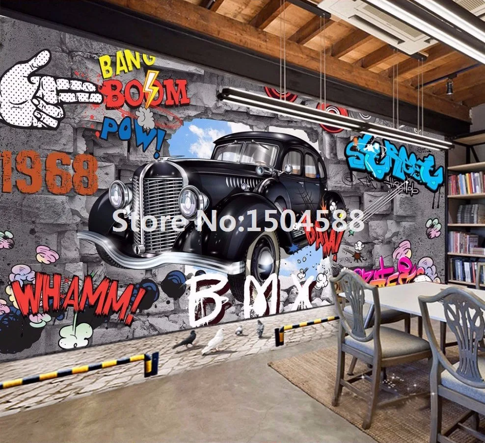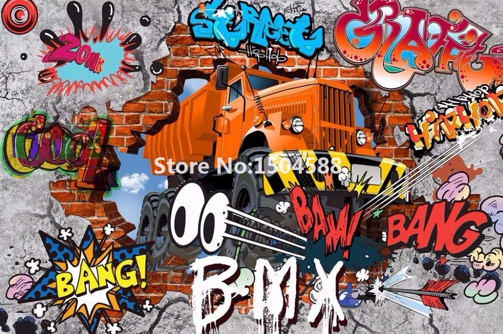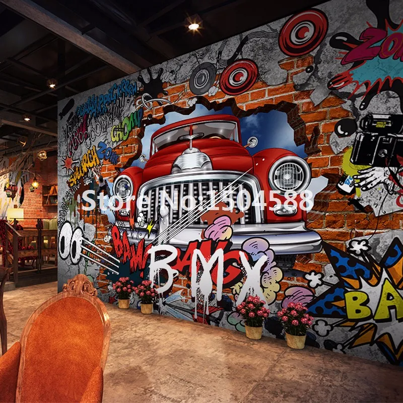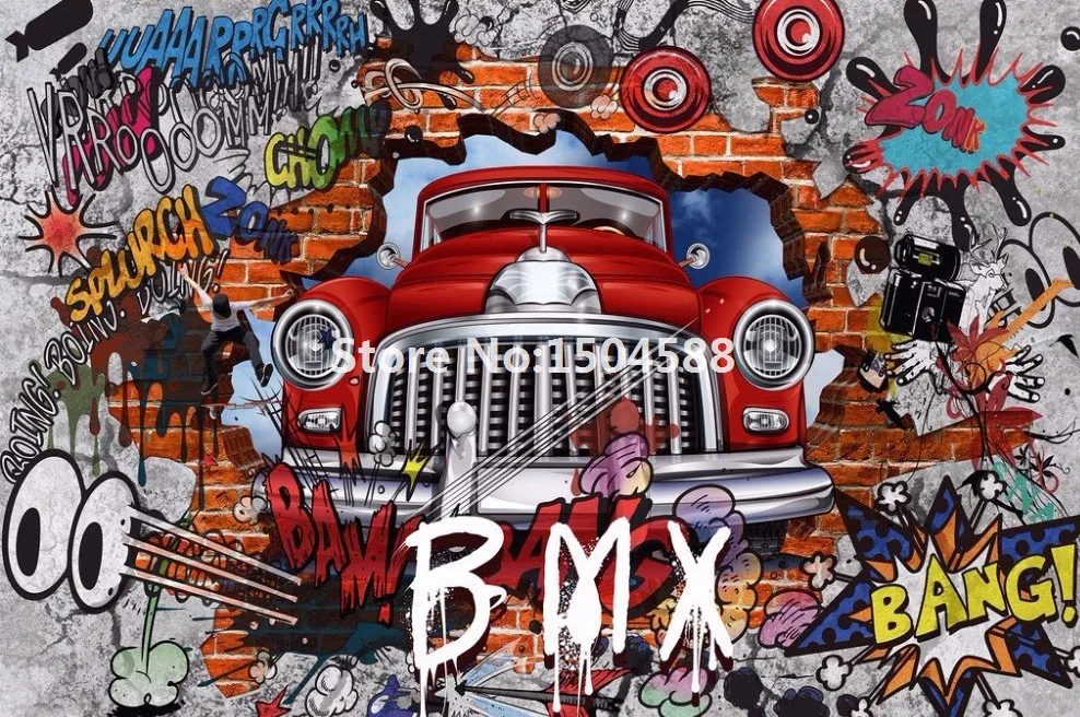 3D фреска с изображением автомобиля из мультфильма граффити на кирпичной стене для ресторанов, мальчиков, спальни, Настенный декор, нетканые 3D обои размера по индивидуальному заказу