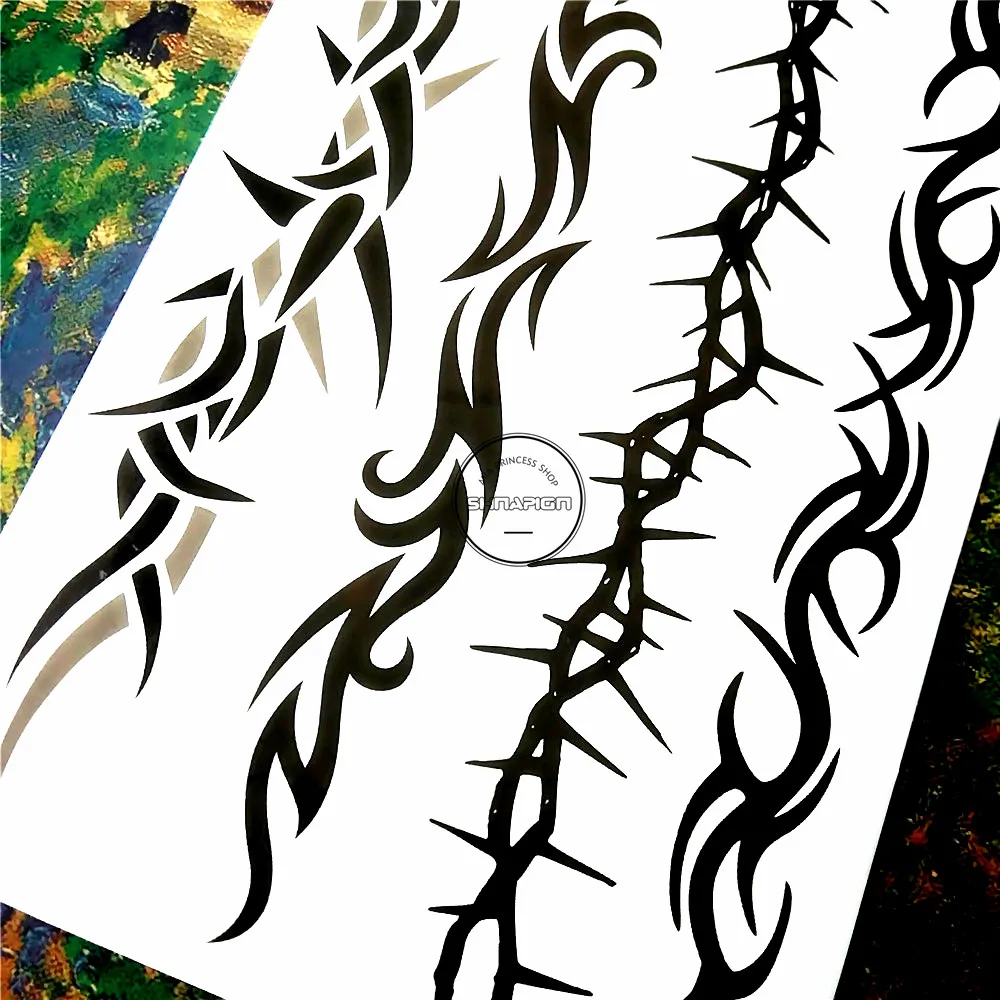 SHNAPIGN черный длинный шипы временный боди арт флэш-стикер татуировки 10*17 см водонепроницаемый хна поддельный Автомобиль Стайлинг стикер татуировки на стену