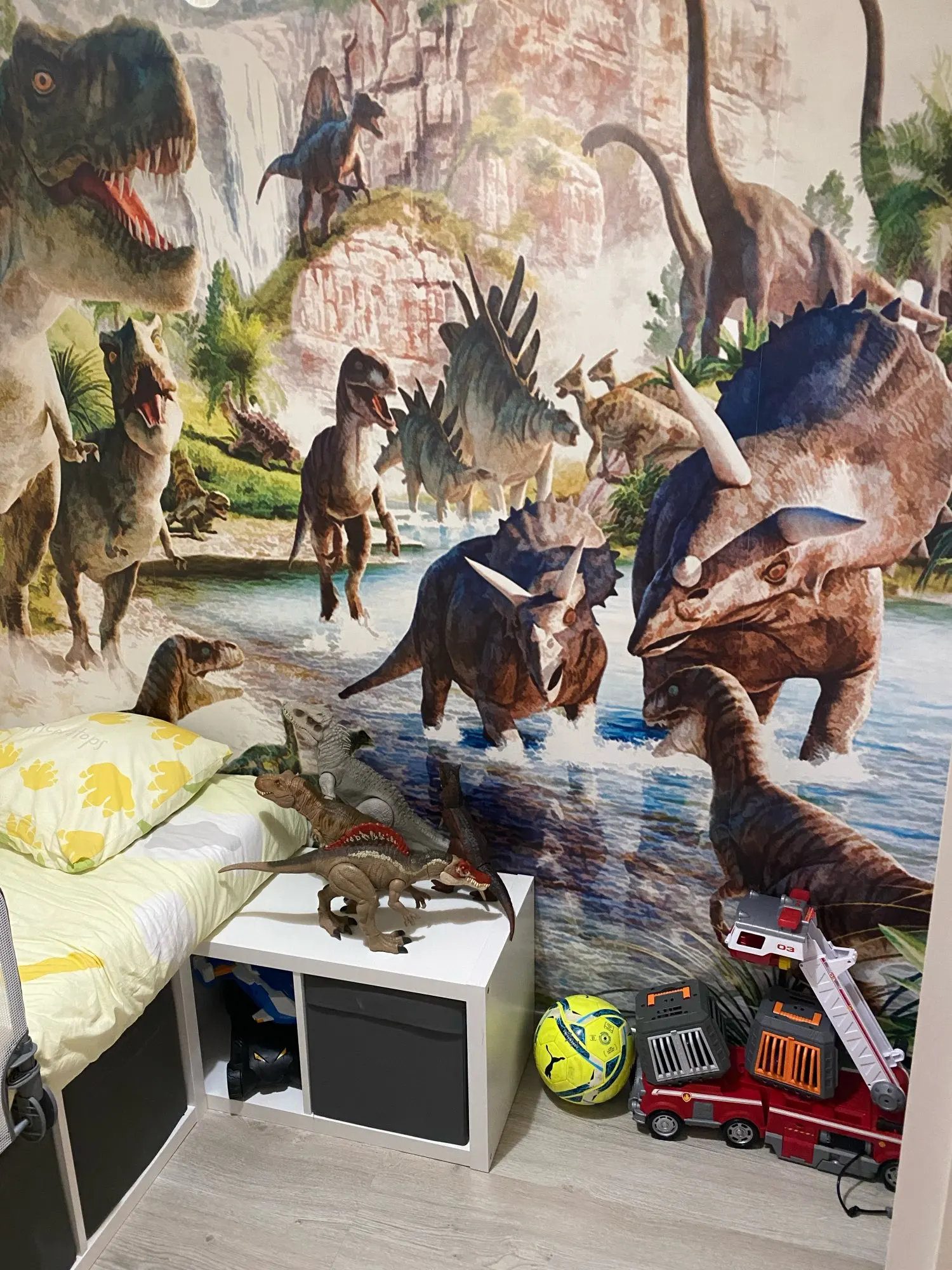 Это фото обои, материал прочный, чем то похож на клеенку для стола.. Вцелом ребенку понравился рисунок, сам выбирал, запах есть, но не сильный. Цвета яркие, чуток размытость присутствует вблизи.