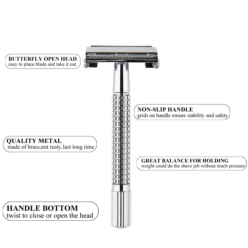 Бритва мужская, 1 шт., с 5 лезвиями, с двойным лезвием, медная, хромированная, Классическая, портативная, для путешествий