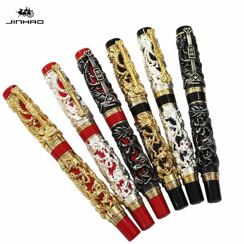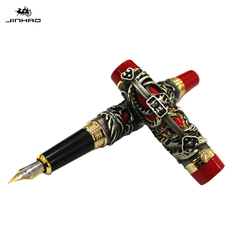 Роскошные подарочные ручки Jinhao серый и красный 3D Дракон и Феникс перьевая ручка 0,5 мм металлических ручек молочного цвета канцелярские принадлежности Бесплатная доставка