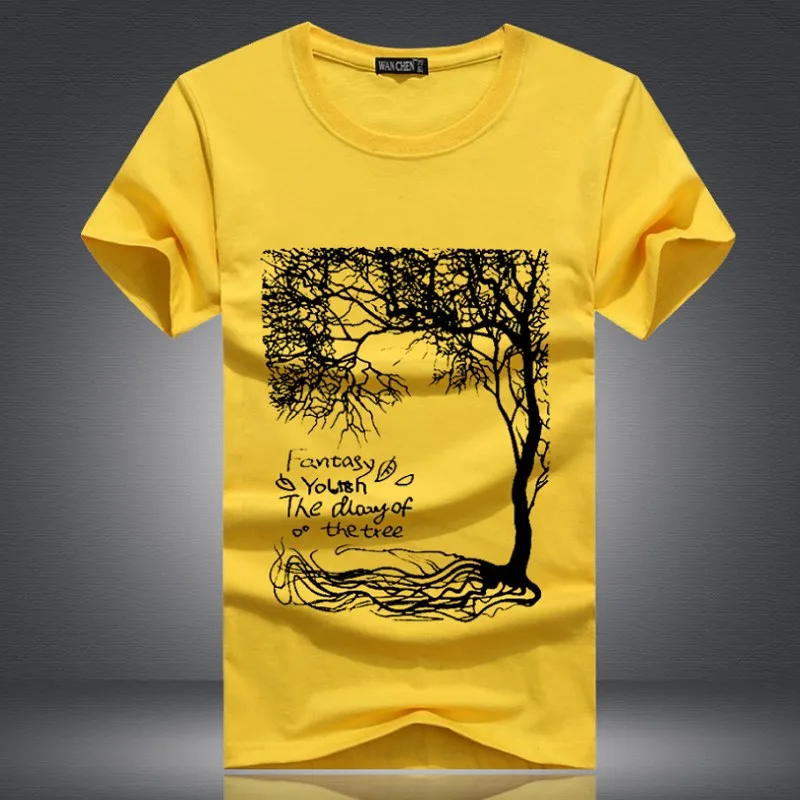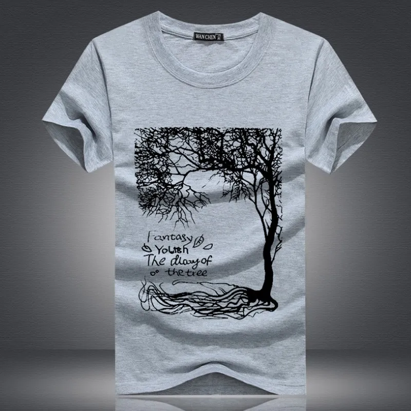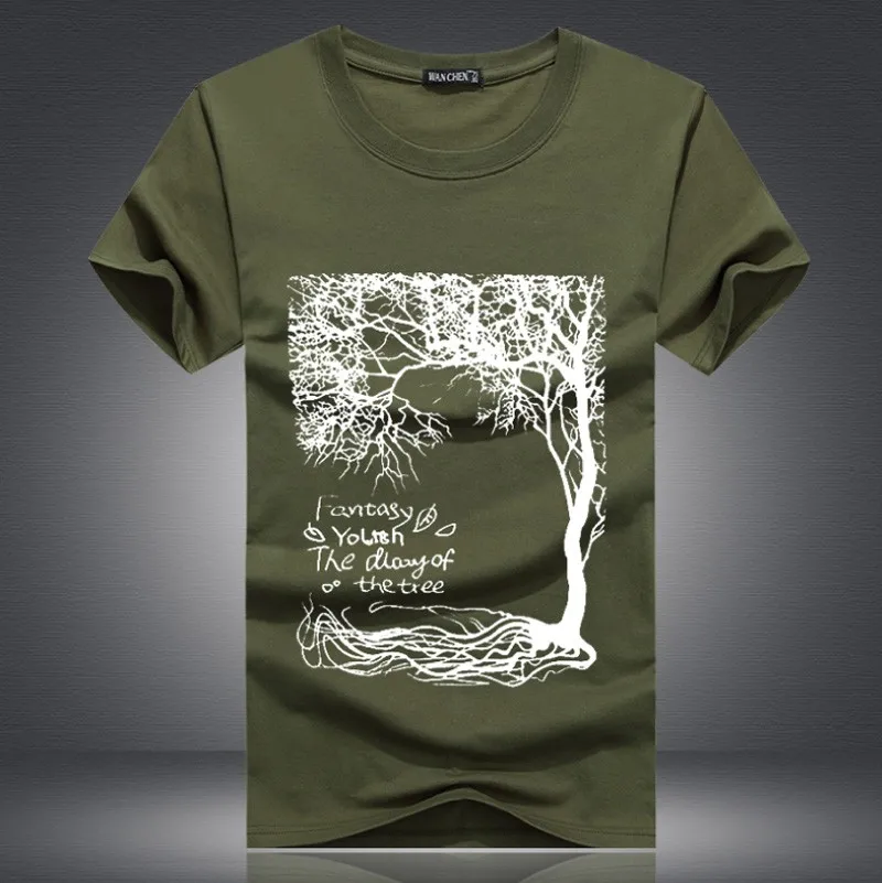 Мужская футболка с круглым вырезом, коротким рукавом и принтом дерева