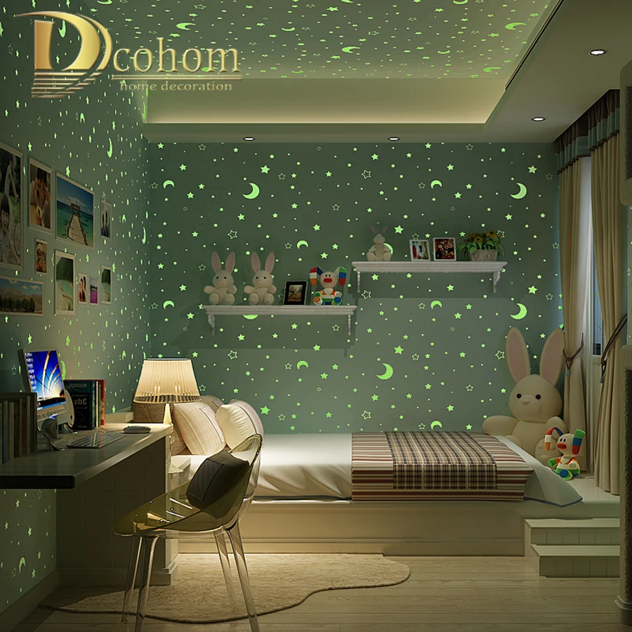 3D светящиеся звезды и луна для мальчиков и девочек обои для спальни для стен Звездные тематические обои домашний декор для детской комнаты