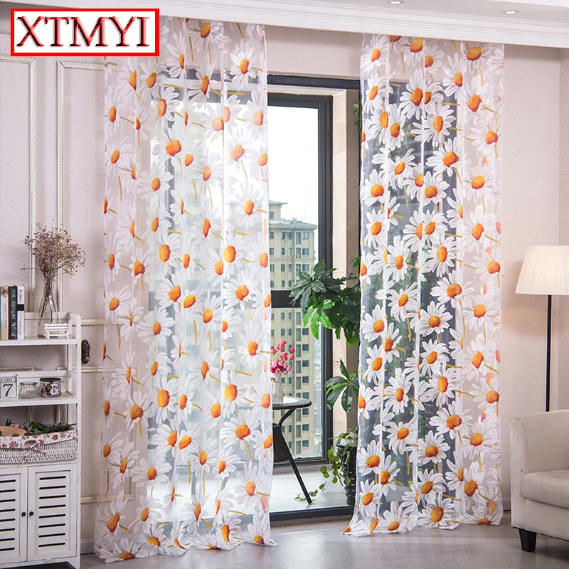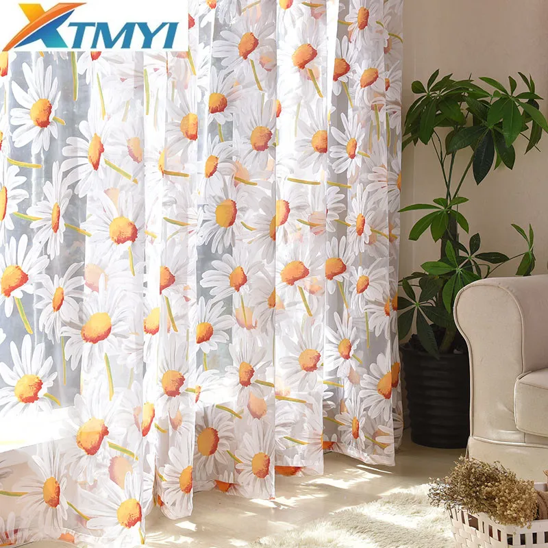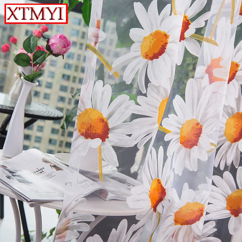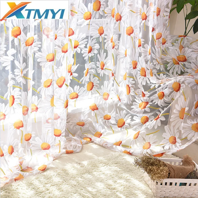 Шторы XTMYI для гостиной, желтые тюлевые занавески с цветочным рисунком для спальни, кухни, занавески для девочек, украшения