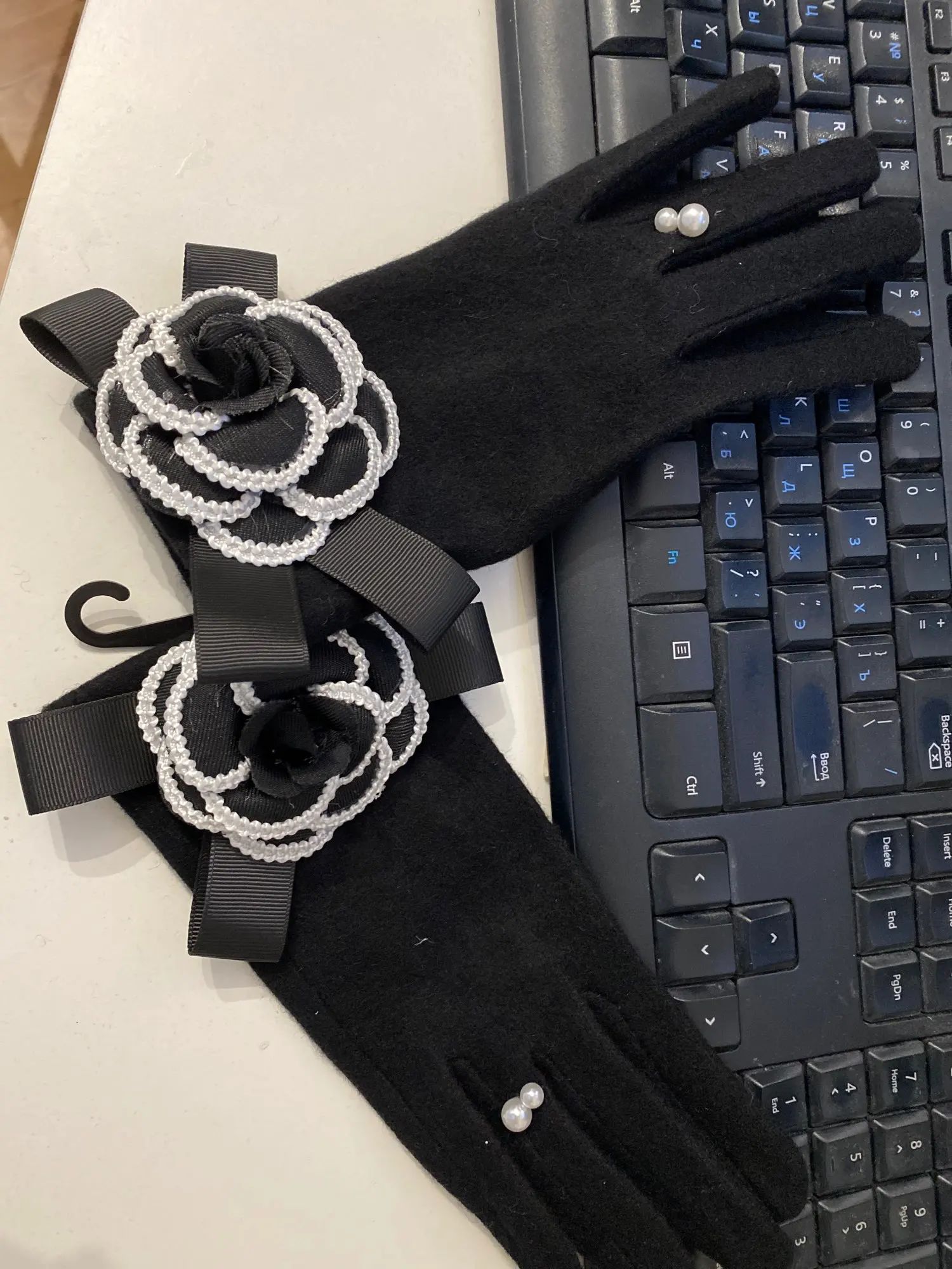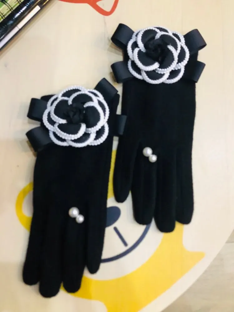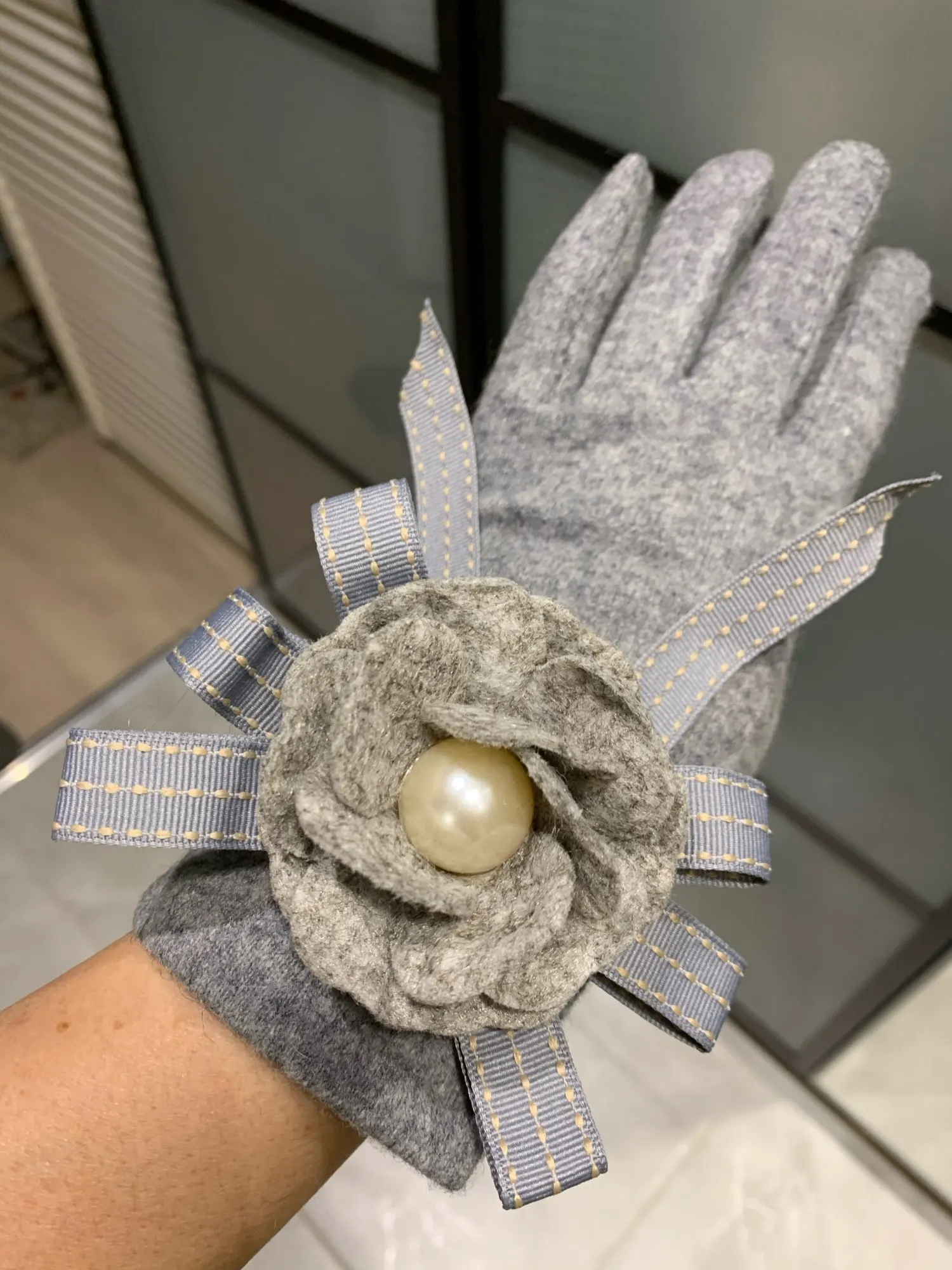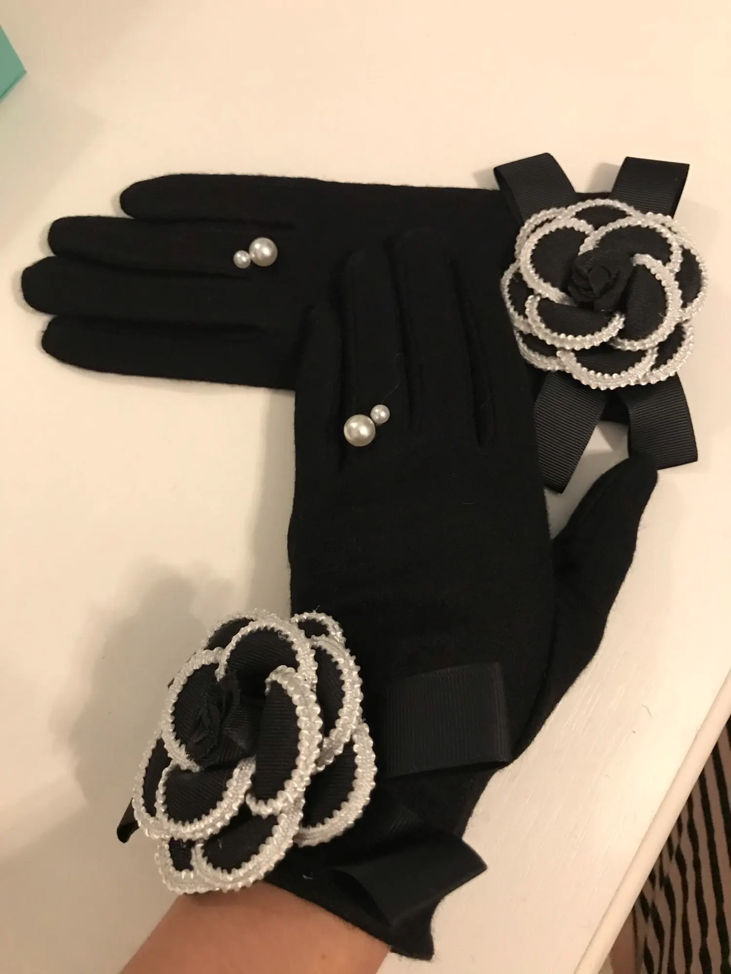 2020 брендовые перчатки, зимние женские перчатки, женские теплые шерстяные перчатки с большим цветком, женские перчатки для вождения