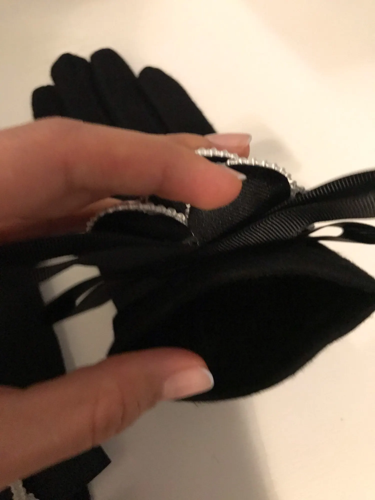 Приклейте жемчужины на одну перчатку очень хорошо видны, в противном случае очень красивые перчатки. Размер на плотной стороне для меня, я обычно ношу L для перчаток, поэтому я доволен. Это совсем не неудобно, только мои пальцы немного длиннее. Очень хорошее детализация сердца