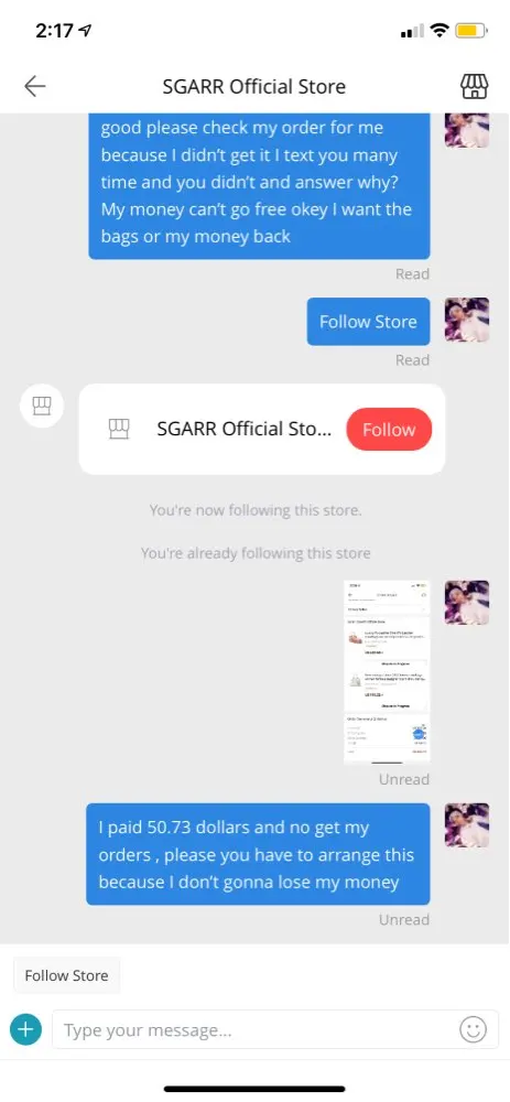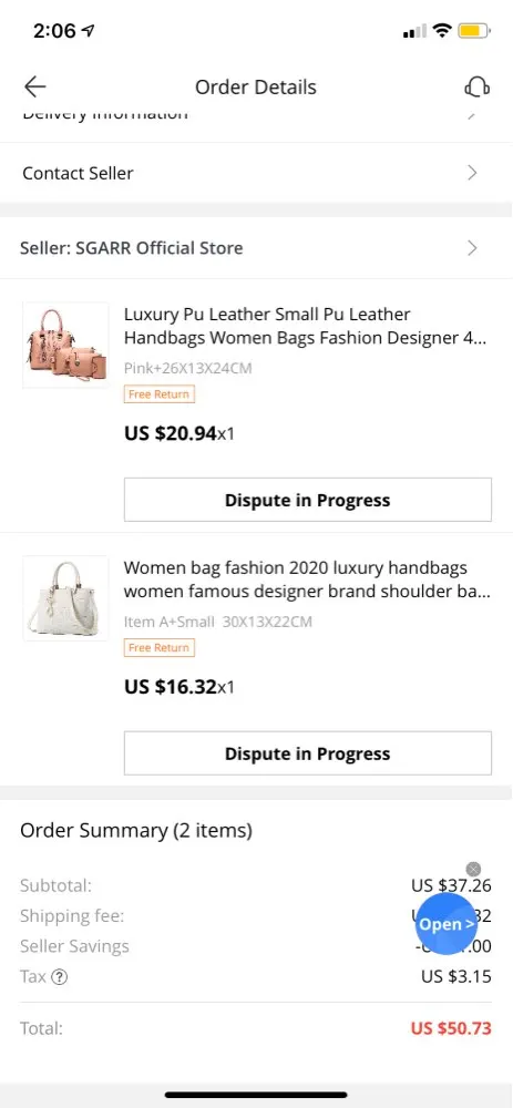 Я не получил свою посылку, я открывал спор, но никакого прогресса, и я отправил текст продавца, и она не отвечила мне, я заплатил 50,73 $ за 2 посылки. Миссис или мистер продавец, вы должны ответить мне, что вы должны решить эту проблему, Alixpress показывает, что посылка была доставлена, но я не получил ее, поэтому я не оставлю свои деньги. Вы должны ответить мне