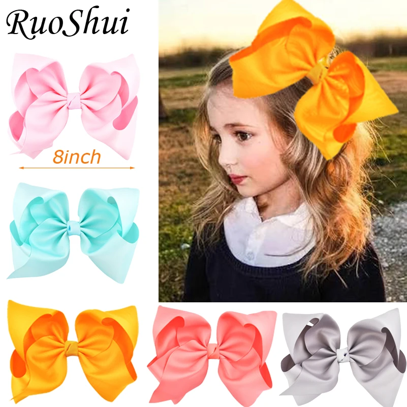 8 "Большой Grosgrain ленты заколки для волос заколки повязка с бантом Твердые Детские волосы бант для девочек