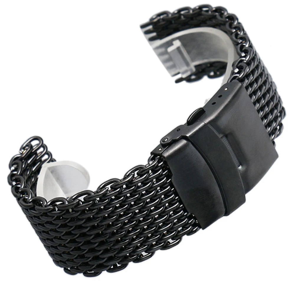 Ремешок из нержавеющей стали для мужских и женских наручных часов, черный складной браслет с застежкой-молнией, 18 мм 20 мм 22 мм 24 мм