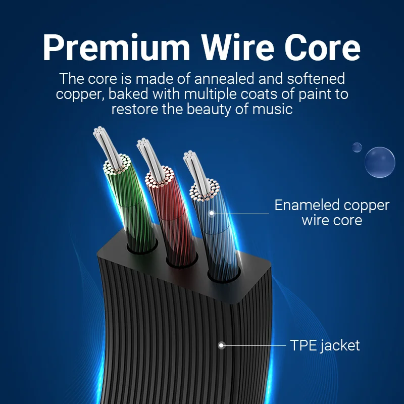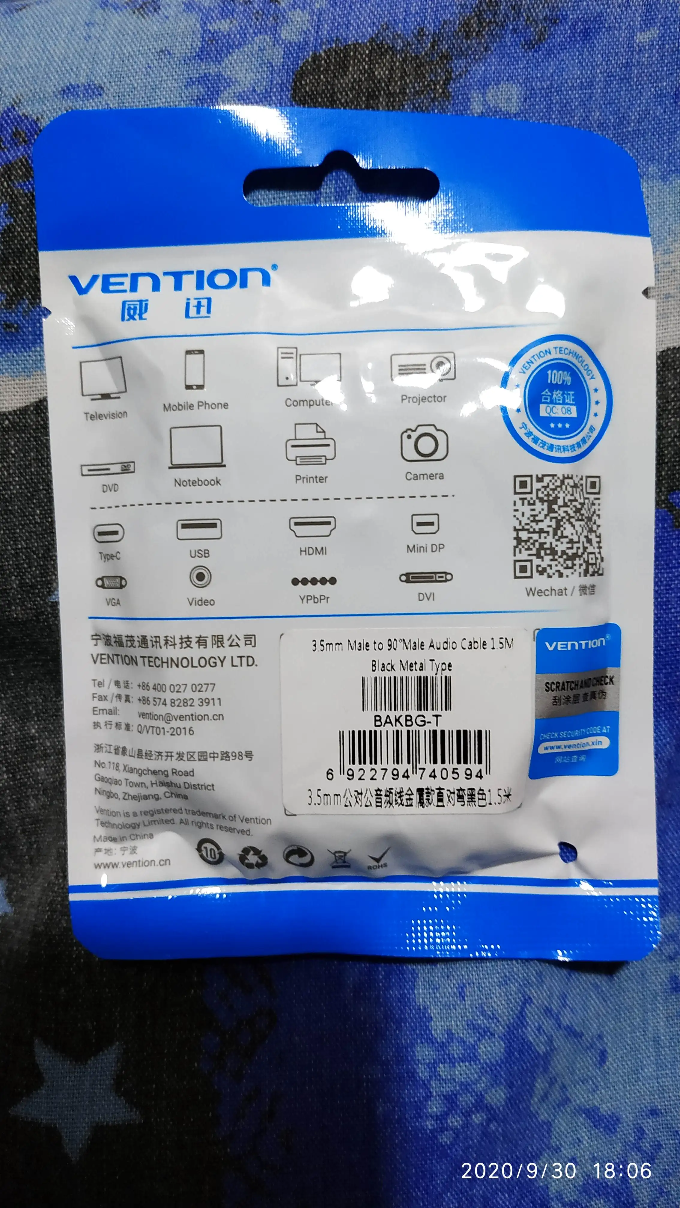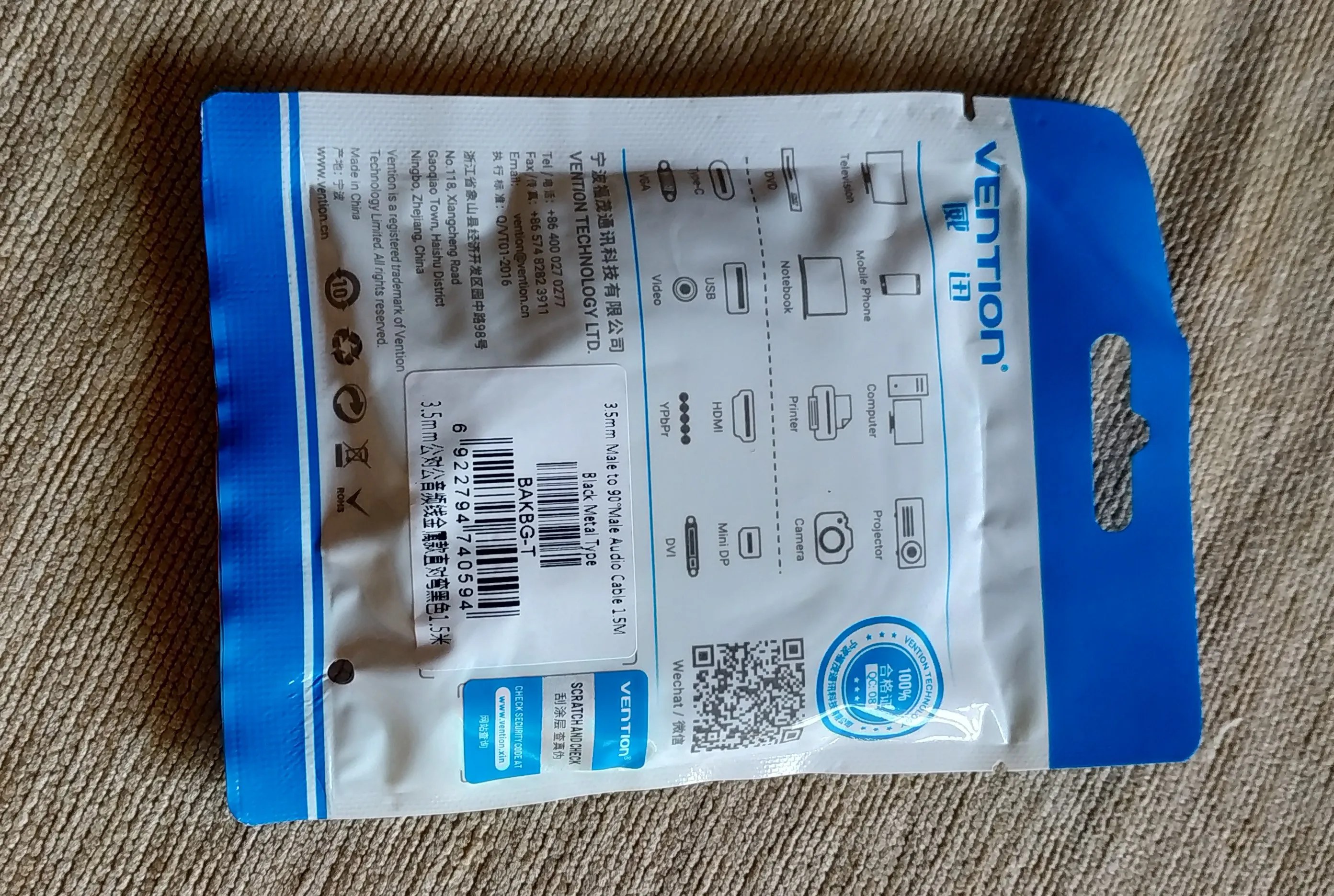 Кабель поставляется в индивидуальной упаковке с логотипом Vention, который является действительно приятным прикосновением, так как другие пакеты являются черно-серыми или желтыми. Сам кабель отличный. Я не измерил сопротивление, но я уверен, что это нормально. Я протестировал кабель с гитарой (с 3-мя адаптерами 3,5-6,5) и с наушниками. Он выполнен хорошо.