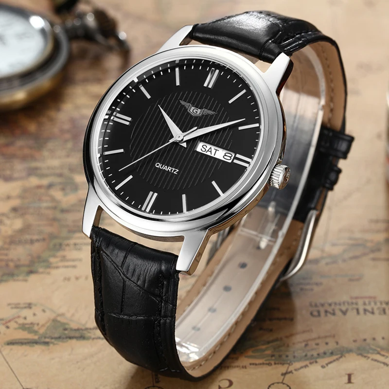 Часы GUANQIN Мужские кварцевые, водонепроницаемые, с кожаным ремешком