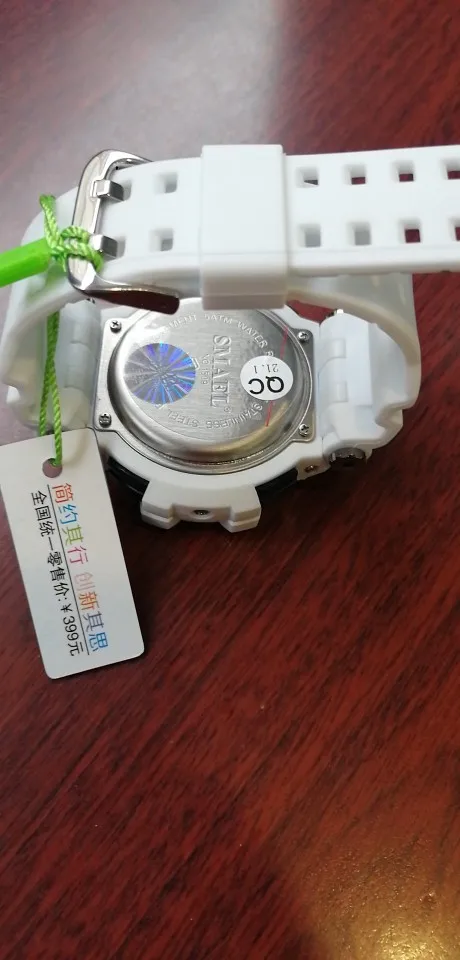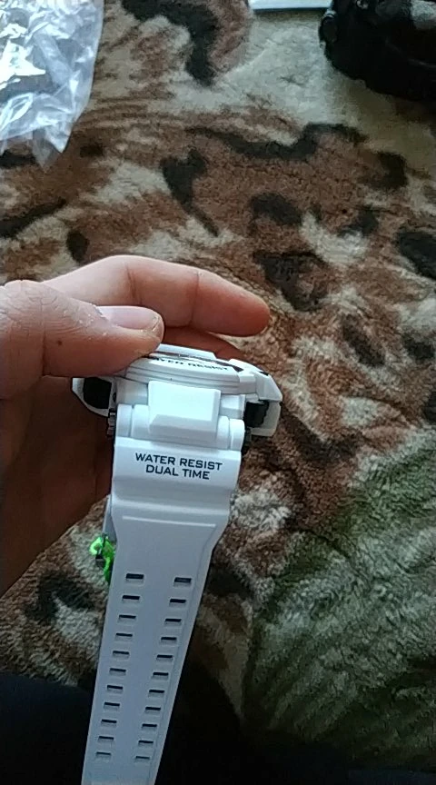 Часики хорошего качества, как на картинке и в описании, кнопки нажимаются плотно и не люфтят, определённо стоят своих денег. Продавец отправил быстро не смотря на праздники, отдельный респект ему за это :) На руке сидят хорошо (даже на моей худенькой). Инструкция на китайском и английском языках, пришлось повыткать в неё пол часика, чтобы разобраться во всех функциях. Умеют показывать: Время, Число, Месяц, Год, День недели. Есть секундомер и будильник. Подсветка включается только на 3 секунды при нажатии кнопки, цвет подсветки зелёно-голубой, не такой как в моем отзыве (камера передаёт этот цвет не верно, в жизни цвет не такой как на фото). Стрелки на циферблате горят в темноте (смотрите фото).