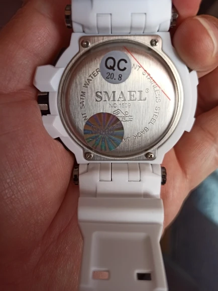 El primer reloj que me llega como corresponde, con la traba para que no gaste la pila....