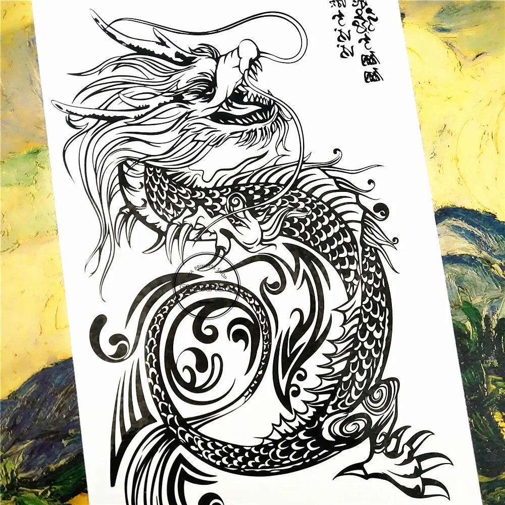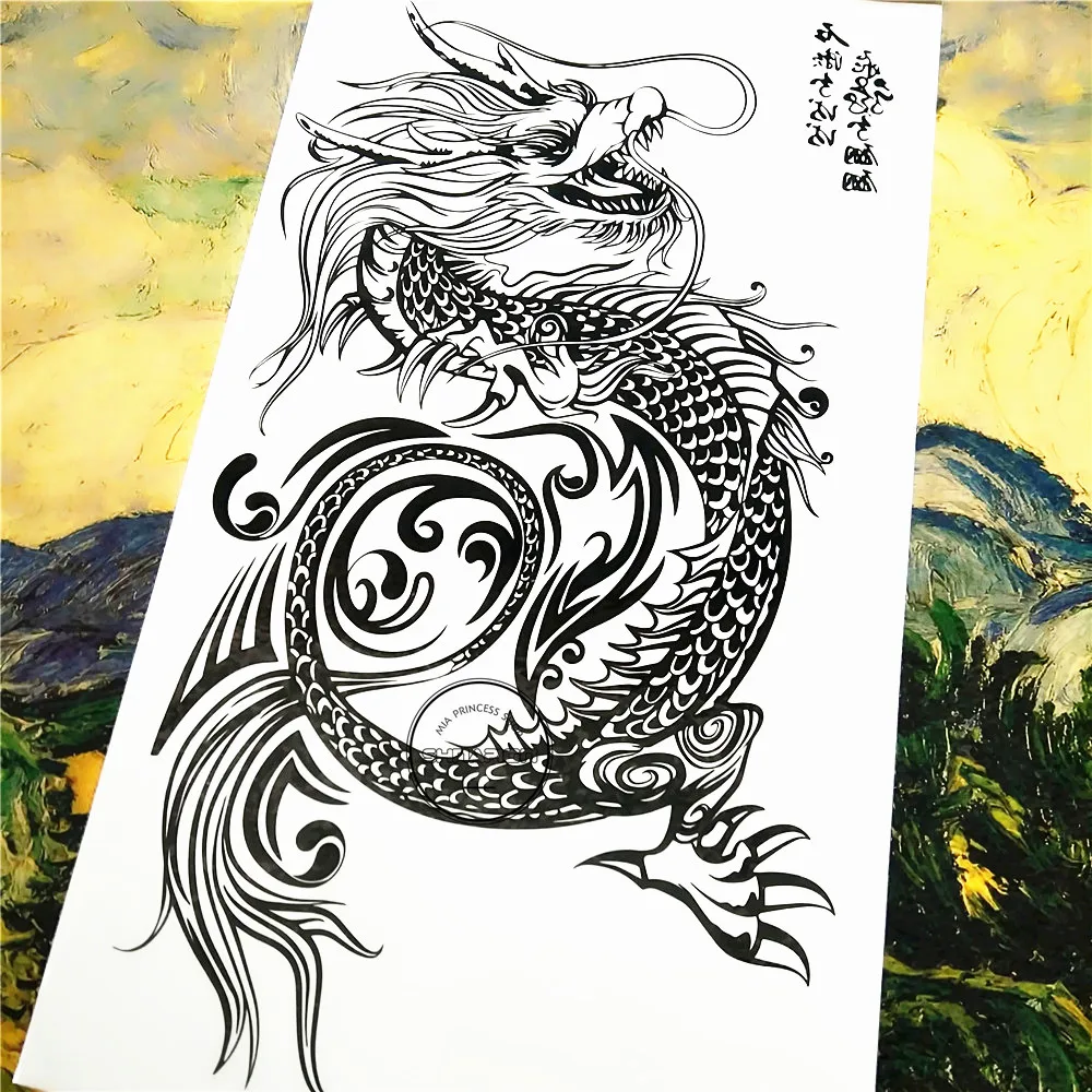 Временная татуировка SHNAPIGN с черным драконом тотем, боди-арт, та...
