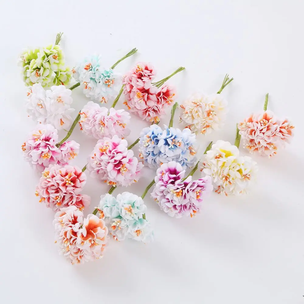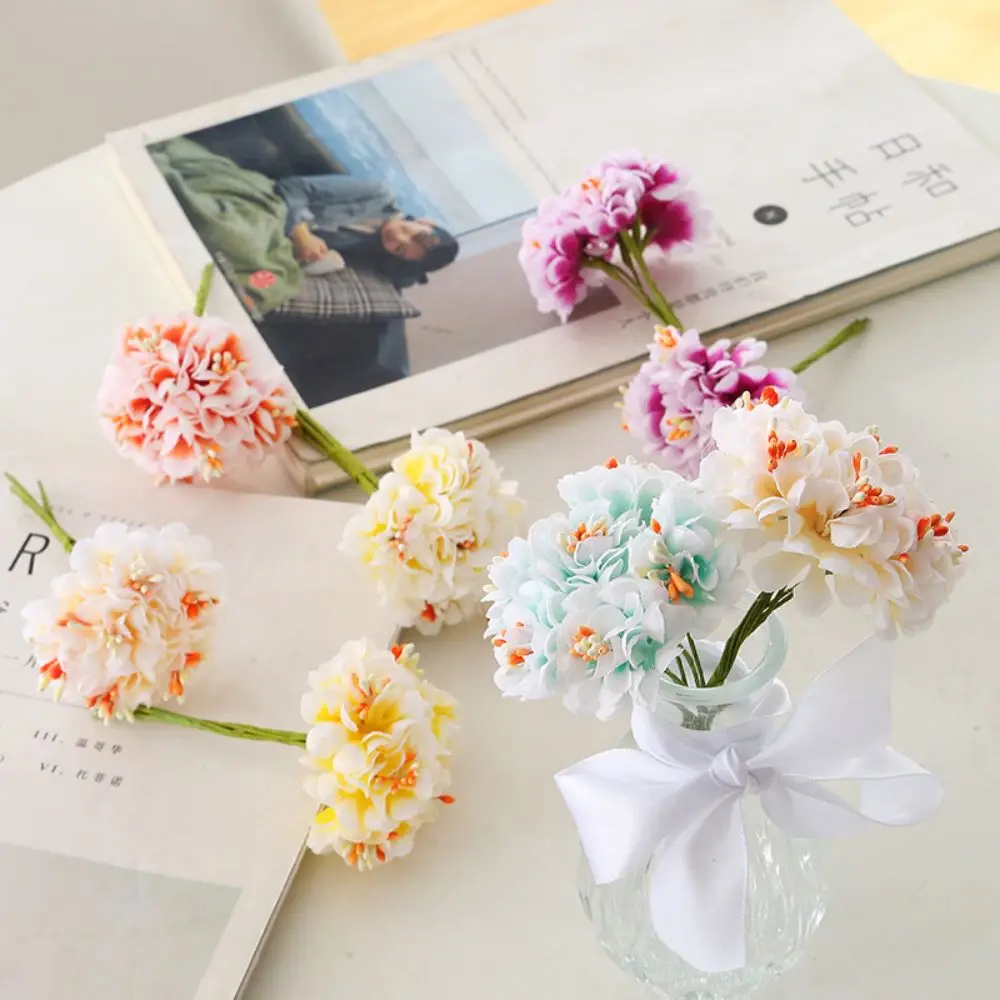 6 шт. Шелк градиент тычинки искусственные цветы букет ручной работы для свадьбы украшения дома DIY скрапбукинг венок поддельные цветы