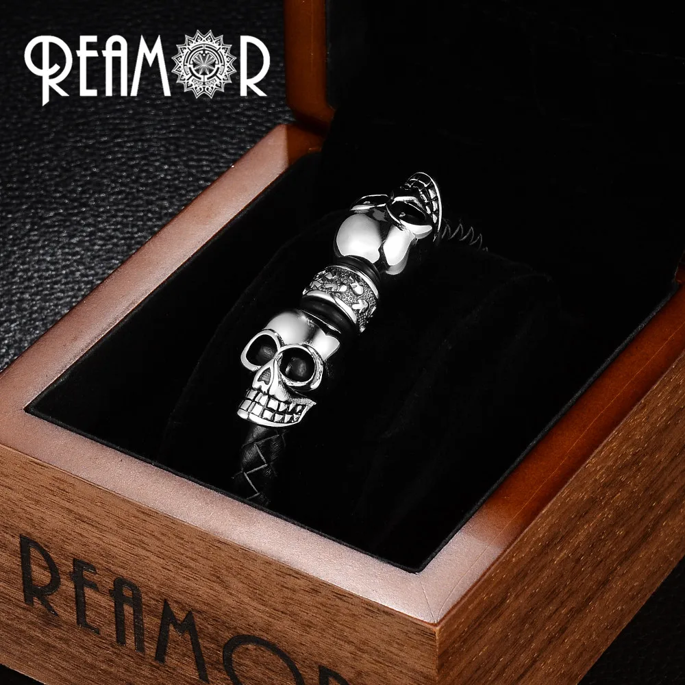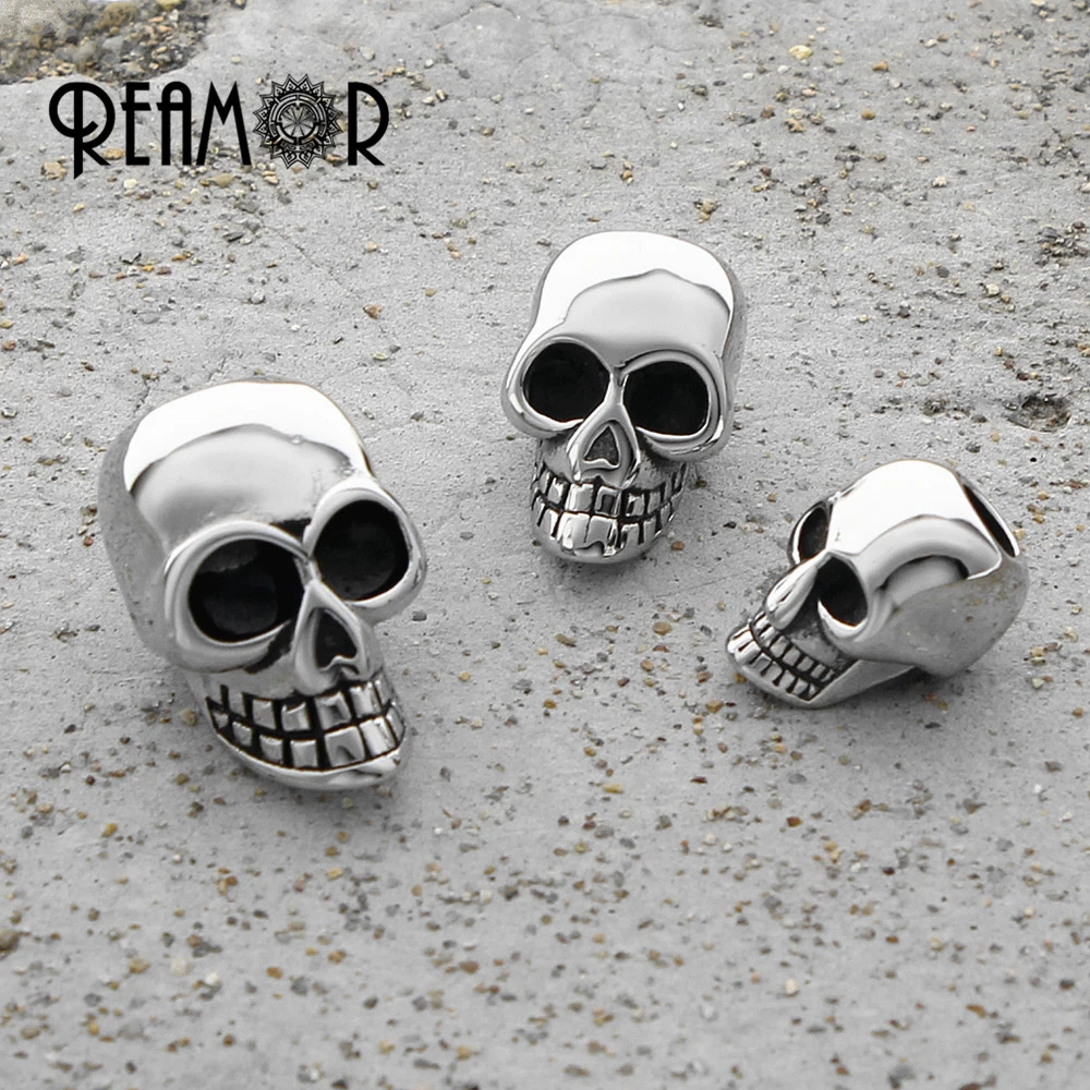 Мужские шармы с черепами REAMOR, шармы из нержавеющей стали 316l с большим отверстием в европейском стиле, бусины в виде скелета для браслета, сделай сам, изготовление ювелирных украшений, 568 мм