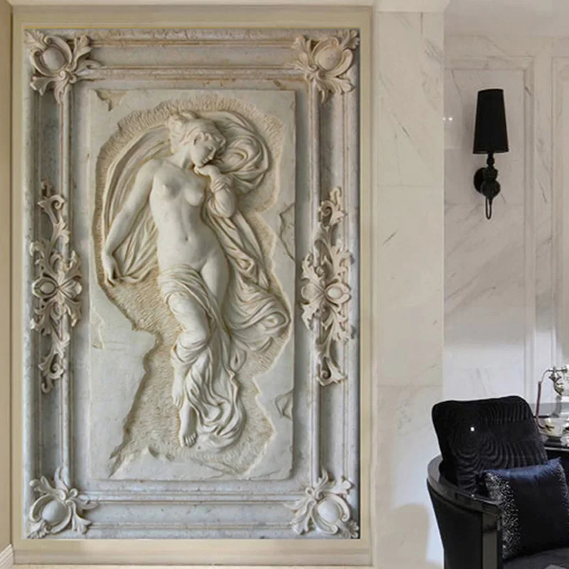 Настенные обои на заказ в Европейском стиле, 3D стереоскопическое художественное рельефное изображение ангела, обнаженная статуя, вход, коридор, блестящие обои
