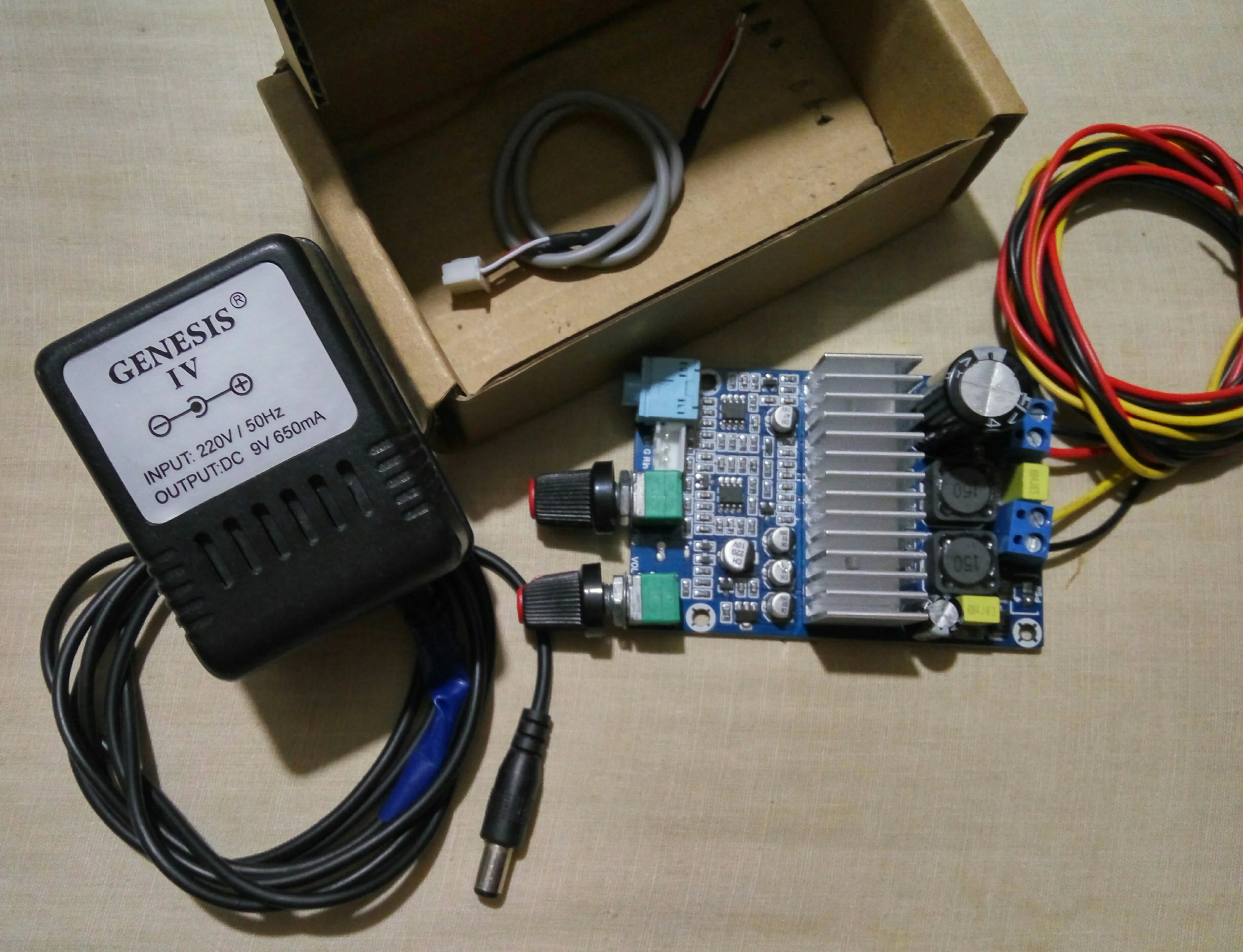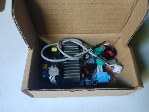 Быстрая доставка. Хорошая упаковка. Полный комплект. Играет отлично. Басы могут быть тихие, но жёсткие. Это то чего не хватало обычной не дорогой домашней системе 2.1. Блок питания пробовал 24в от офисной техники и 15в от приставки sega genesis (тот что на фото, да, он выдает именно 15в не смотря на то что на нем написано), сильной разницы не заметил. Сабвуфера hundai 50 ватт от домашнего кинотеатра при повышенной мощности даже не хватает, но для дома вообще более чем достаточно. Сборка на троечку, криво припаянные разъёмы, криво припаянный регулятор, не смытый флюс, до конца закрученный с одной стороны радиатор, но, всё работает. И да, он практически не греется, за все время работы тепленький слегка стал. Отличный усилитель, то чего не хватало дома. Соседи оценили бы, слава богу у меня их нет.