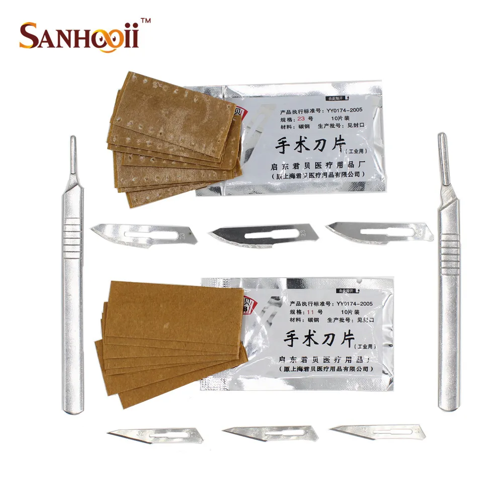 #11 #23 Ручка ножа и 20 шт. лезвия из углеродистой стали хирургические Скальпели лезвия живая ткань печатная плата
