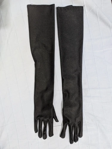Хороший товар. Перед Хэллоуином искала чёрные длинные перчатки в городе и фигела от цен, 1000 рублей за кусочек кружева. Тут, конечно, цена очень разумная, качество неидеальное, но для выступлений подойдет. Материал эластичный, натягиваются перчатки выше локтя, пальцы обшиты не везде ровно, указательному не повезло, он немного квадратный. Ну это если приглядываться Ставлю 5, и наверно ещё белые закажу. Ах да, доставка не самая быстрая - больше полутора месяцев и без отслеживания по России. Это значит, каждые пару недель как штык на почте с просьбой "а гляньте по адресу, нет там для меня ничего? ". Ну в общем, немножко терпения не помешает. Всех с Новым годом!