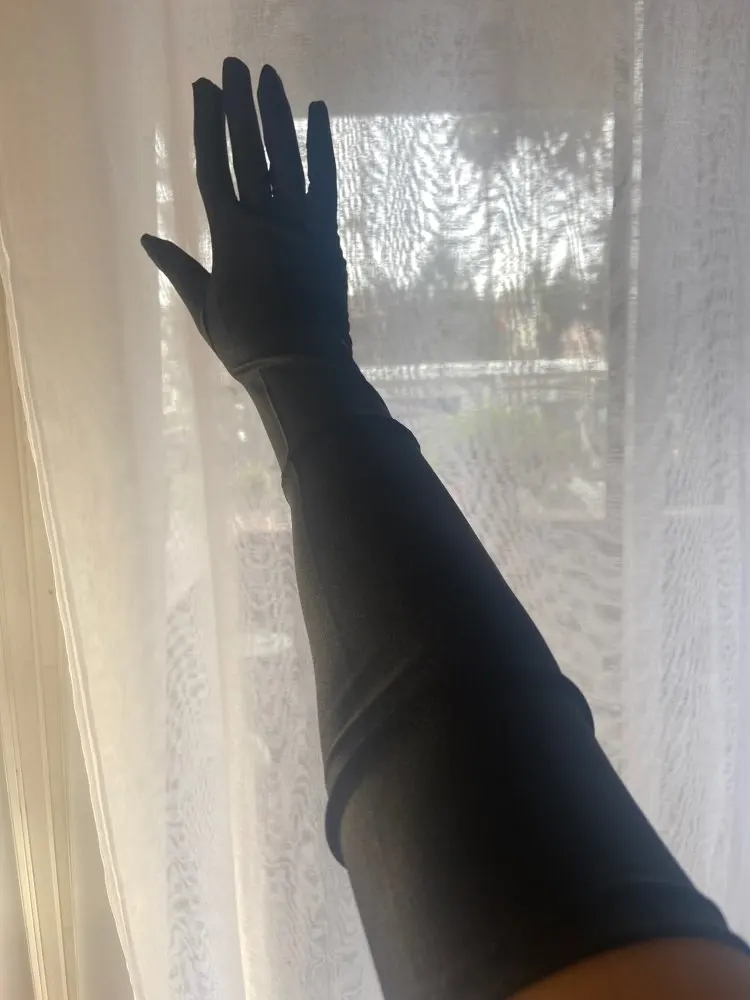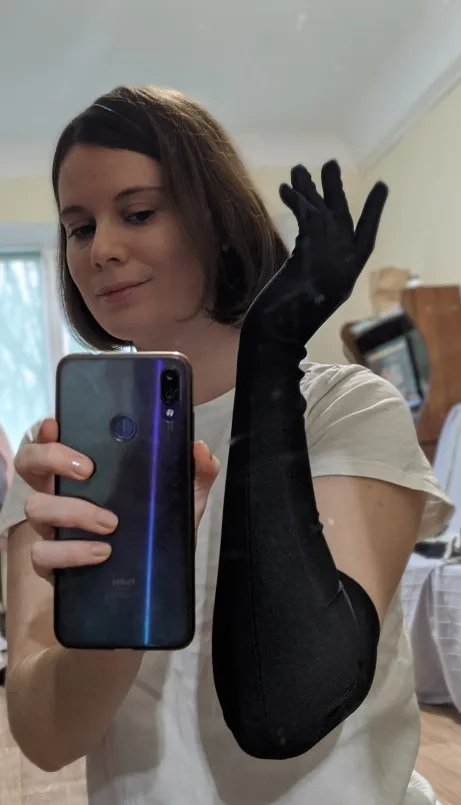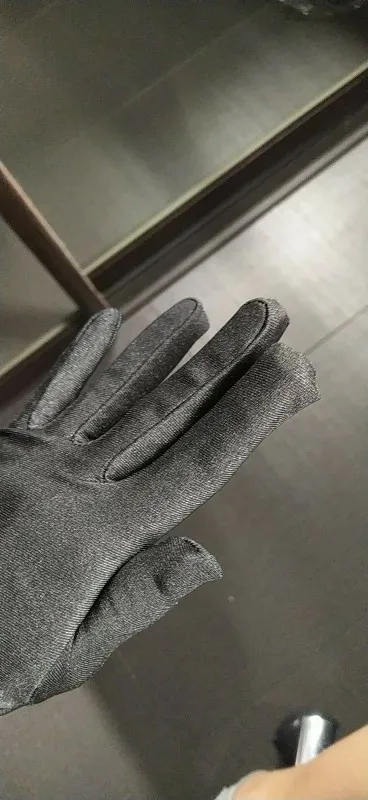 Перчатки тоньше, чем я ожидала. И совсем не атласные. Но мне нравятся. Эластичные, хорошо тянутся и облегают руки