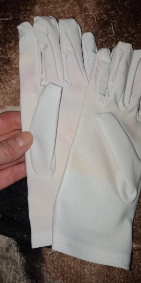 Заказ был на золотые и на серебряные перчатки. К серебряным вопросов нет, золотые - оказались не золотыми а телесного цвета... Не такие как на картинке, возможно ошиблись на складе. Есть мелкие торчащие ниточки, но это мелочи - устранить не долго.