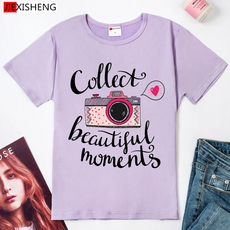 Футболка женская, с принтом в виде камеры, с коротким рукавом, HH244