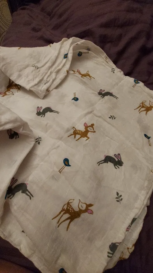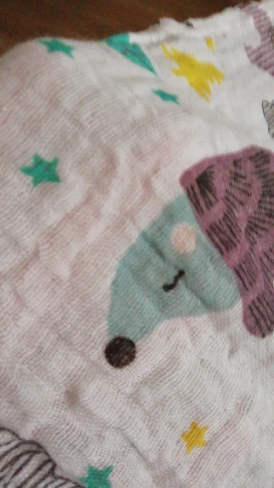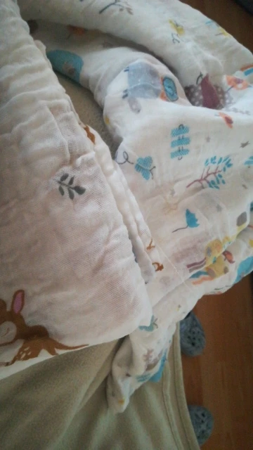 Это очень красиво! Цвет и модель такие же, как на фотографиях. И, хотя это только один слой, это 100% хлопок и немалый размер. Идеально подходит для переброса, когда Он освежает летом или закрывает коляску. Я куплю снова!