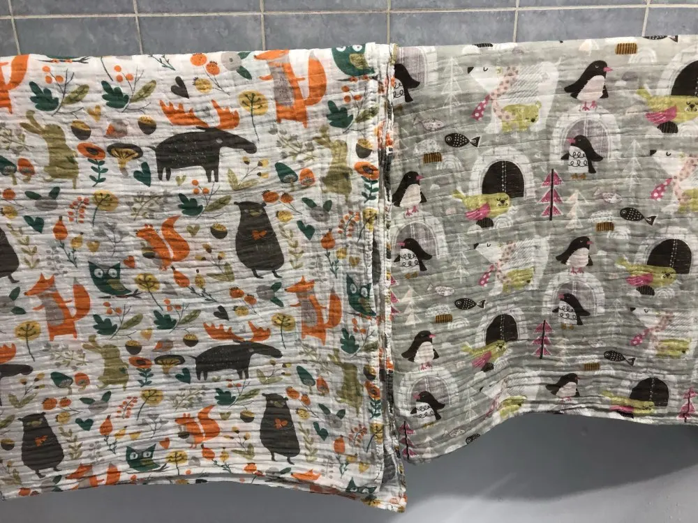 Классные большие пеленки, мягкие и очень приятные на ощупь. После стирки не полиняли, не вытянулись, уголки не завернулись. Принт на всех пеленках яркий, сочный, не кривой. На одной из пелёнок была маленькая дырочка, но совершенно не критичная, была замечена не сразу. В магазинах такие же видела в несколько раз дороже, так что для меня эти пеленки однозначно стоят своих денег.