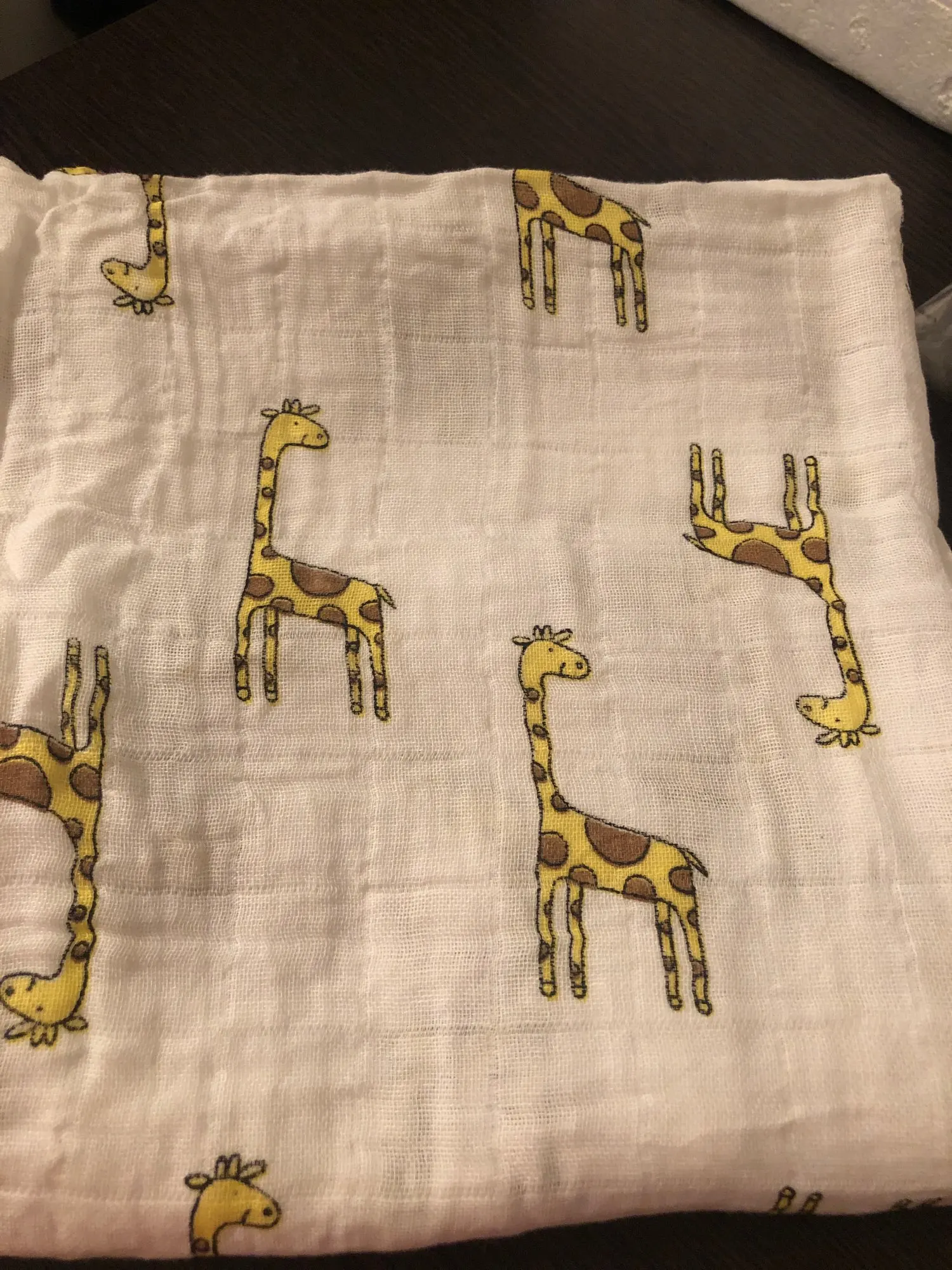 Пелёнка норм, соответсвует заявленному 100*120 (хотя на упаковке все 120*120 стоят), приятной расцветки с жирафиками, реально двухслойная, хорошо прошита. Доставка до спб 1 мес.