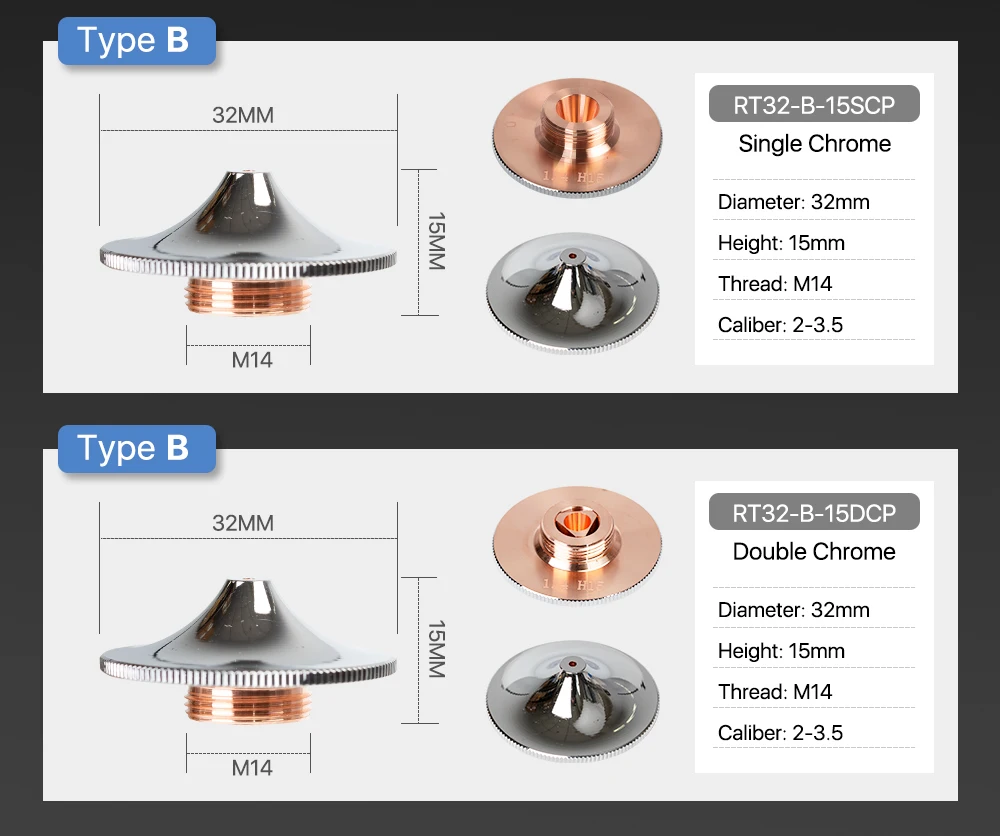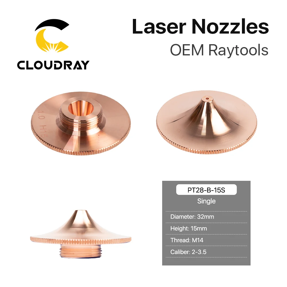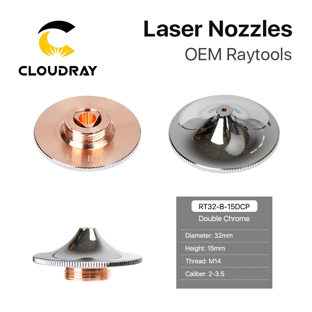 Cloudray Raytools Тип B насадка для лазерной резки Dia.32 H15 Калибр 0,8-4,0 мм однослойный хромированный двухслойный s