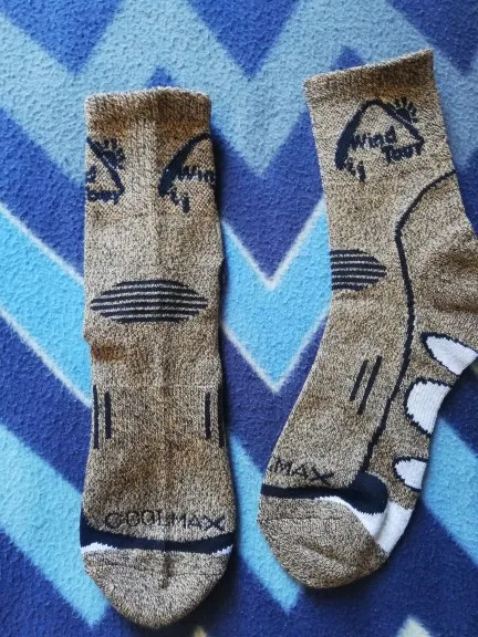 Несколько лет ношу только трекинговые носки, последнее время два, внутренний тонкий Coolmax от российского Splav и внешний толстый британской армии. На улице ношу с армейскими ботинками, бегаю в кроссовках и берцах и на работе с кроссовками - работаю комплектовщиком, по 12 часов хожу непрерывно. Получил эти носки 2 дня назад, одел по два на ногу - зима и для амортизации. Пробежал в них 6 км по снегу, сходил пешком 3 по 6 км по снегу и откатал две смены по 12 часов. Супер, лучше предыдущего комплека. теплые, плотные и пот дренажат в разы лучше - больше содержание Coolmaх. В отличии от трекинговых есть швы но вроде не чувствую. В разы дешевле. Очень доволен. Взял 3 пары и сейчас дозакажу еще впрок. Износоустойчивость оценить не могу, нужно время, Coolmax мой предыдущий ходил на порядок дольше обычных носков и по деньгам себя отбивал, но может он был армирован чем-то, не знаю. Но за эту цену и так все супер.