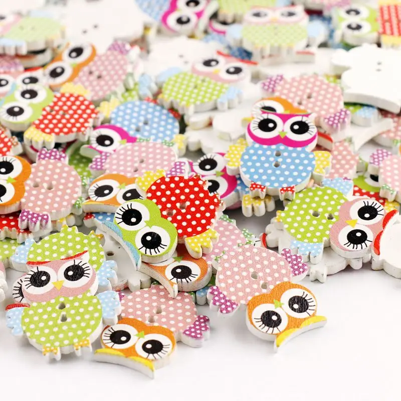 [[+ + + 60PZ Crazy Cartoon Birds рукоделие деревянные кнопки для девочек ручной работы товары для рукоделия натуральный цвет многоцветный Legno Bambole + + +]