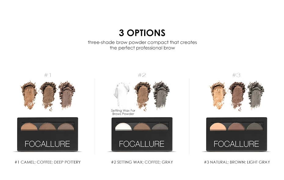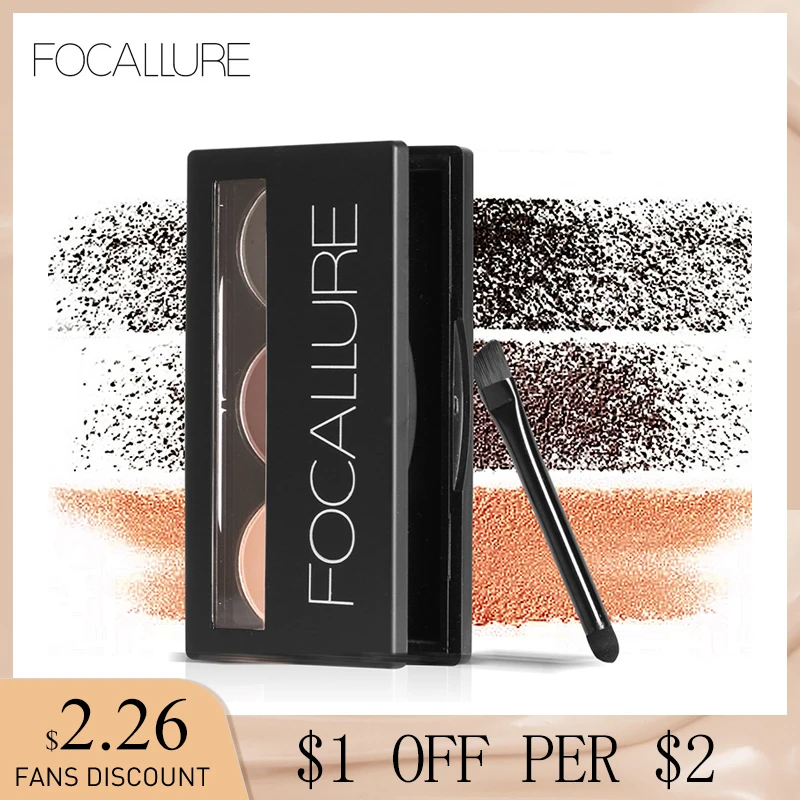 FOCALLURE 3 цвета, водостойкие тени для век, пудра для бровей, палитра для макияжа, женская косметика, набор для макияжа бровей
