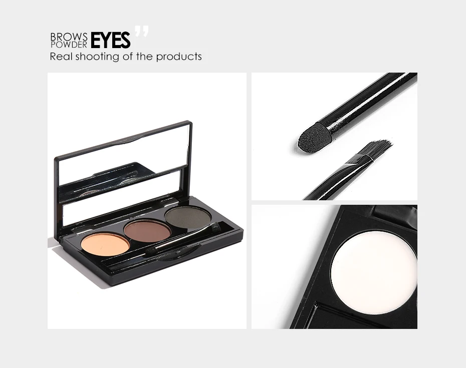 Палетка пудры для бровей, 3 оттенка в палитре, водонепроницаемая и неразмазывающаяся с зеркалом и кистями для бровей внутри ручка Focallure