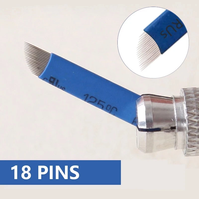 100 шт., синие 18-контактные иглы для перманентного макияжа бровей