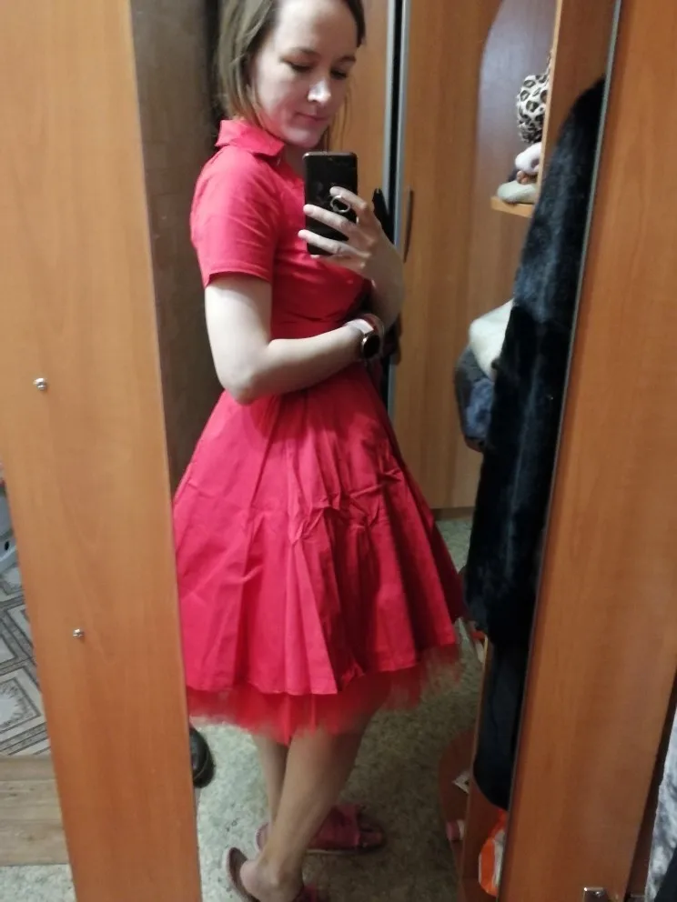 Я в восторге от юбки, она обалденно красивая : цвет яркий, очень пышная (4 слоя фатин, за счёт того, что юбка как бы на кокетке - она ещё пышнее, 1 - атлас). Сшита аккуратно, не колется. Для лета, на праздники, фотосессии - идеально. Можно носить и как подъюбник под платье в стиле "Стиляги". Пришло до Казани примерно за 4.5 недели