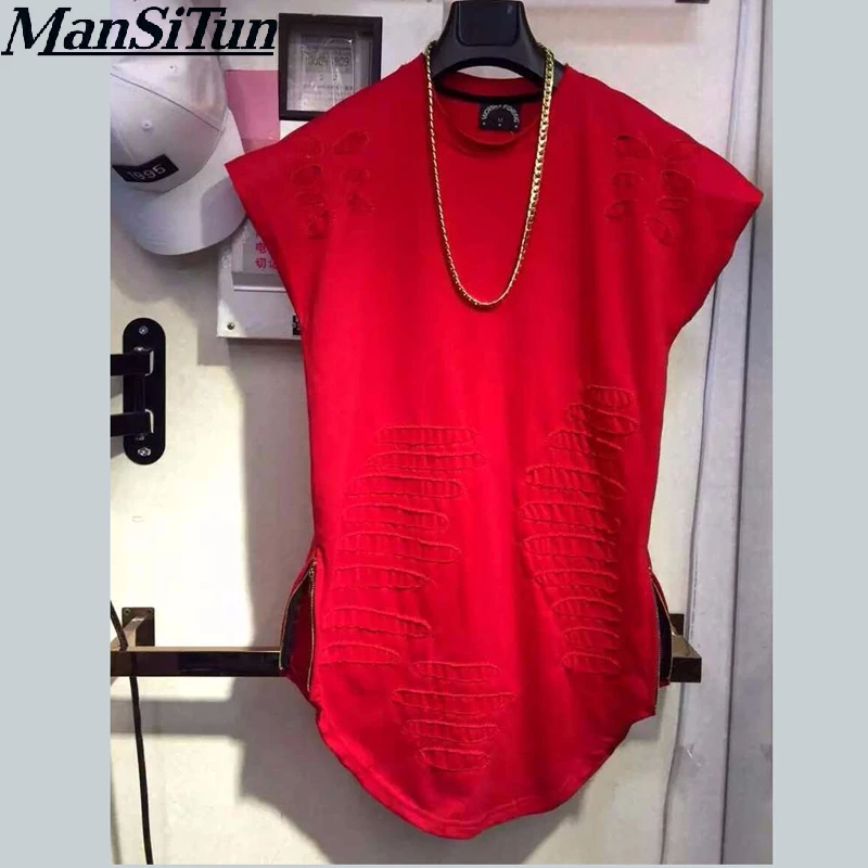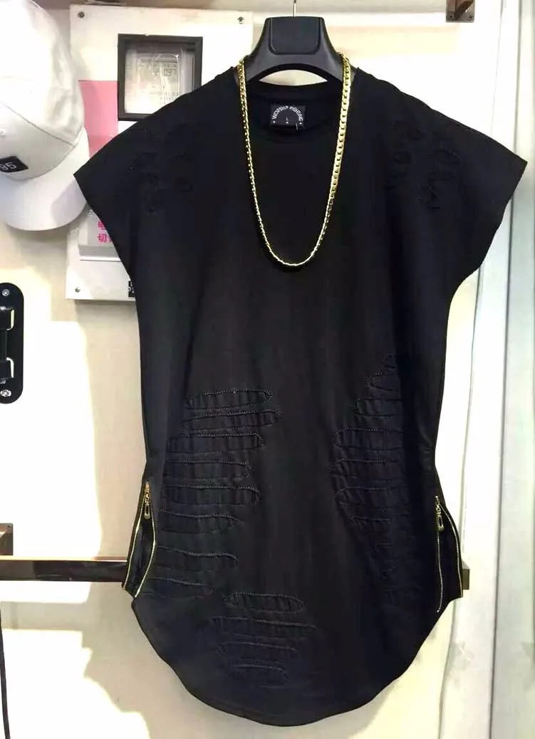 Мужская футболка с закругленным подолом, модная длинная футболка с молнией и боковой молнией, 2020