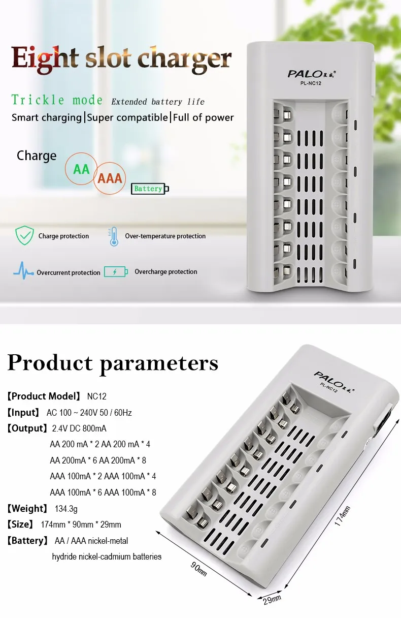 PALO зарядное устройство Original1.2V зарядное устройство для аккумуляторов AA AAA Ni-MH Ni-Cd интеллектуальное зарядное устройство для аккумуляторов