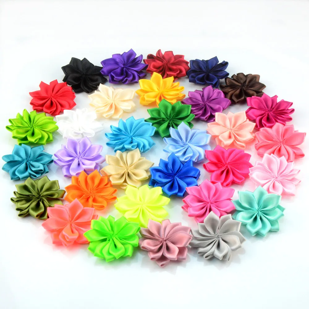300 шт.лот 32 цвета U Pick 4,5 см маленькая заостренная лепестковая атласная лента цветы Незаконченные сделай сам Аксессуары для волос для девочек TH218