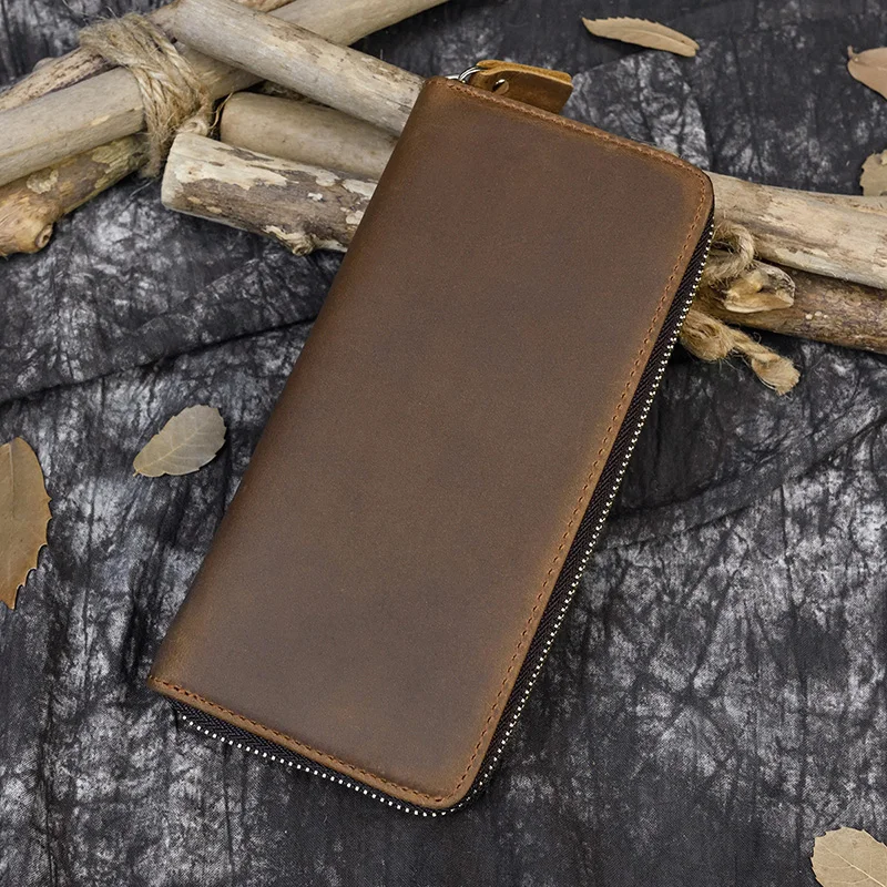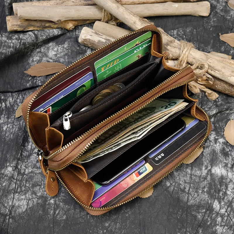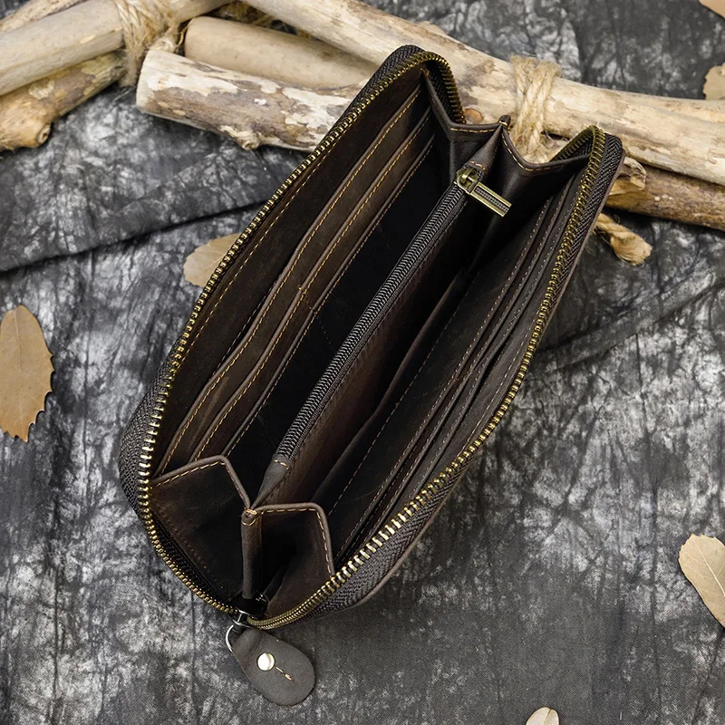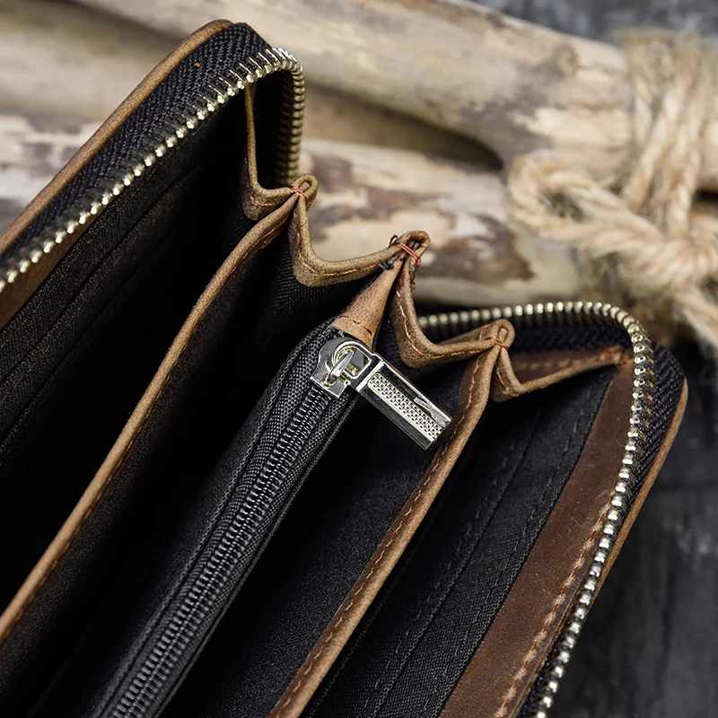 Мужской кошелек из натуральной кожи crazy horse, Длинный кошелек на молнии, с отделением для монет, 4 слоя, чехол для телефона
